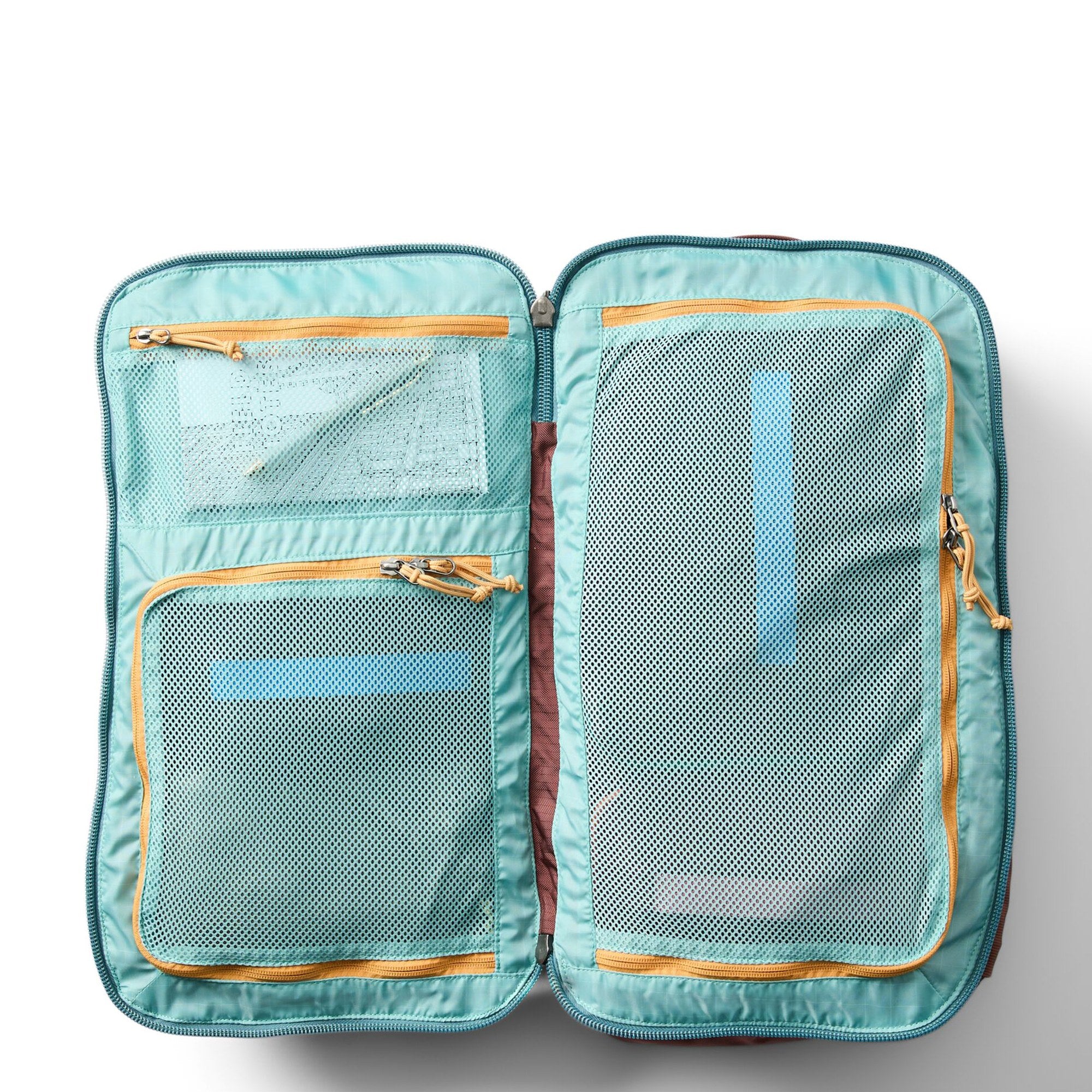- Organisation – kofferähnliche, umlaufende Reißverschlussöffnung mit Netztrennwänden für einfache Übersicht und sicheren Transport