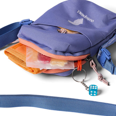 Eine kompakte Umhängetasche von Cotopaxi in lebendigem Asternblau, die sich flexibel an verschiedene Trageweisen anpasst.