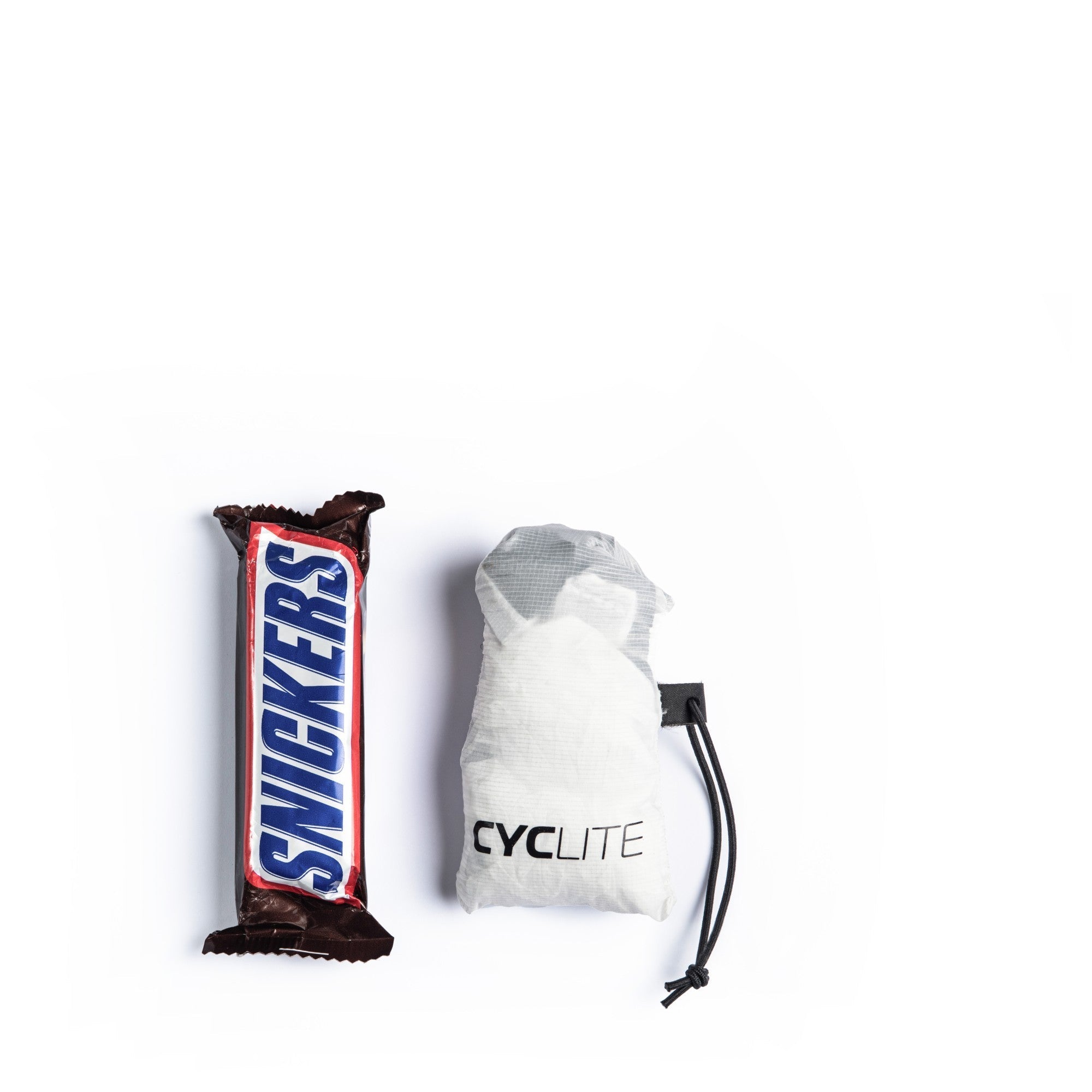 Die Musette besticht durch ihr durchdachtes Design und ihre kompakten Maße. Im zusammengefalteten Zustand ist sie so klein wie ein Snickers-Riegel und passt problemlos in jede Tasche: