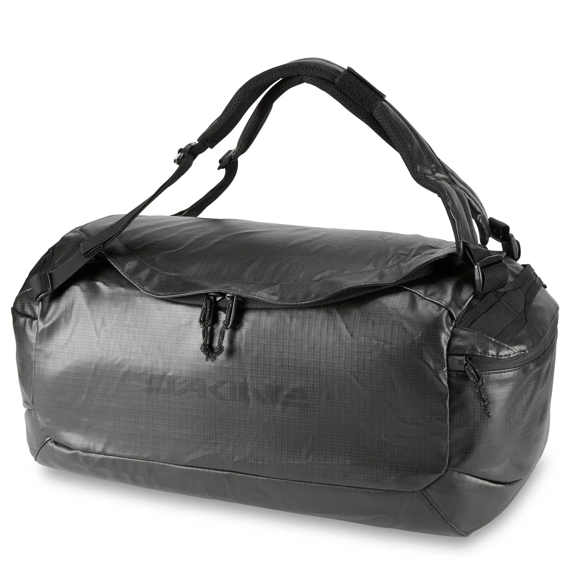 Die Dakine Ranger Duffle 60 ist eine robuste Reisetasche in klassischem Schwarz, die mit ihrem Volumen von 60 Litern ideal für vielseitige Reiseeinsätze geeignet ist.