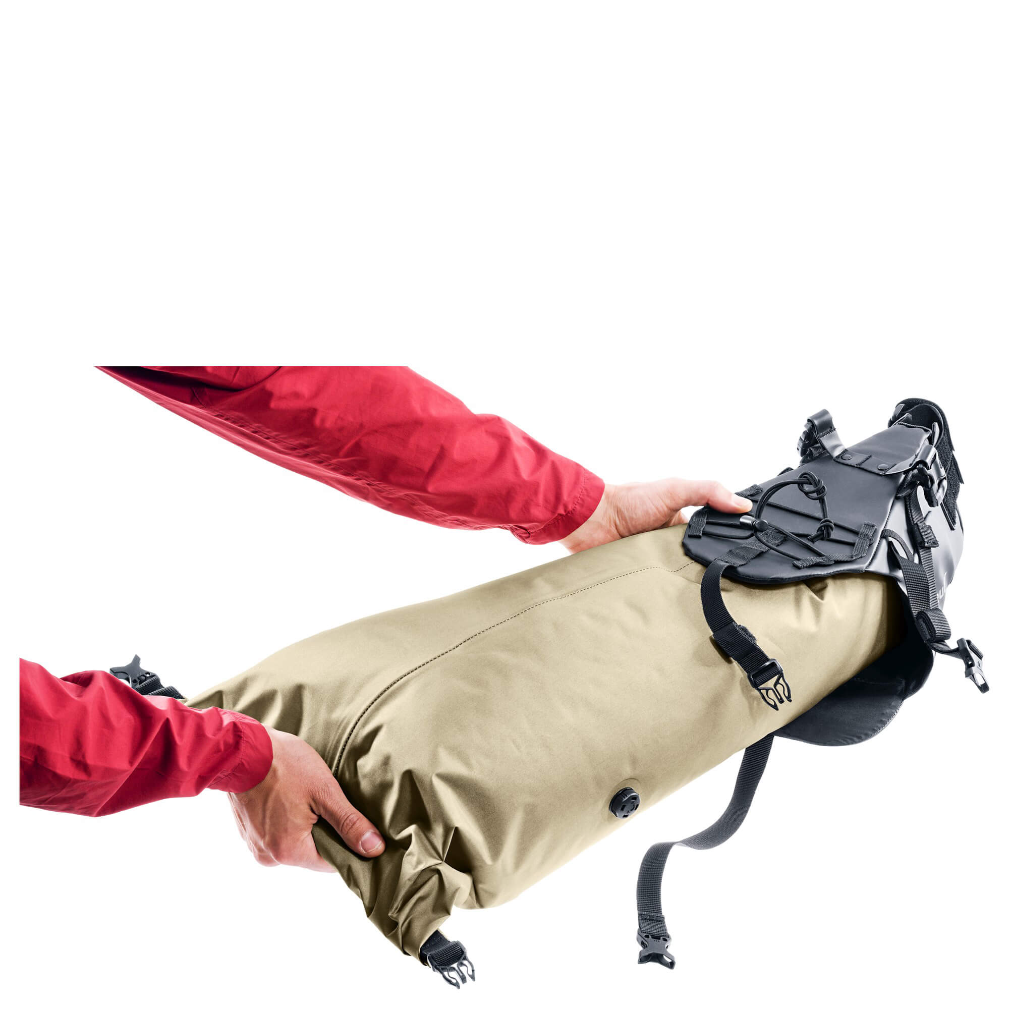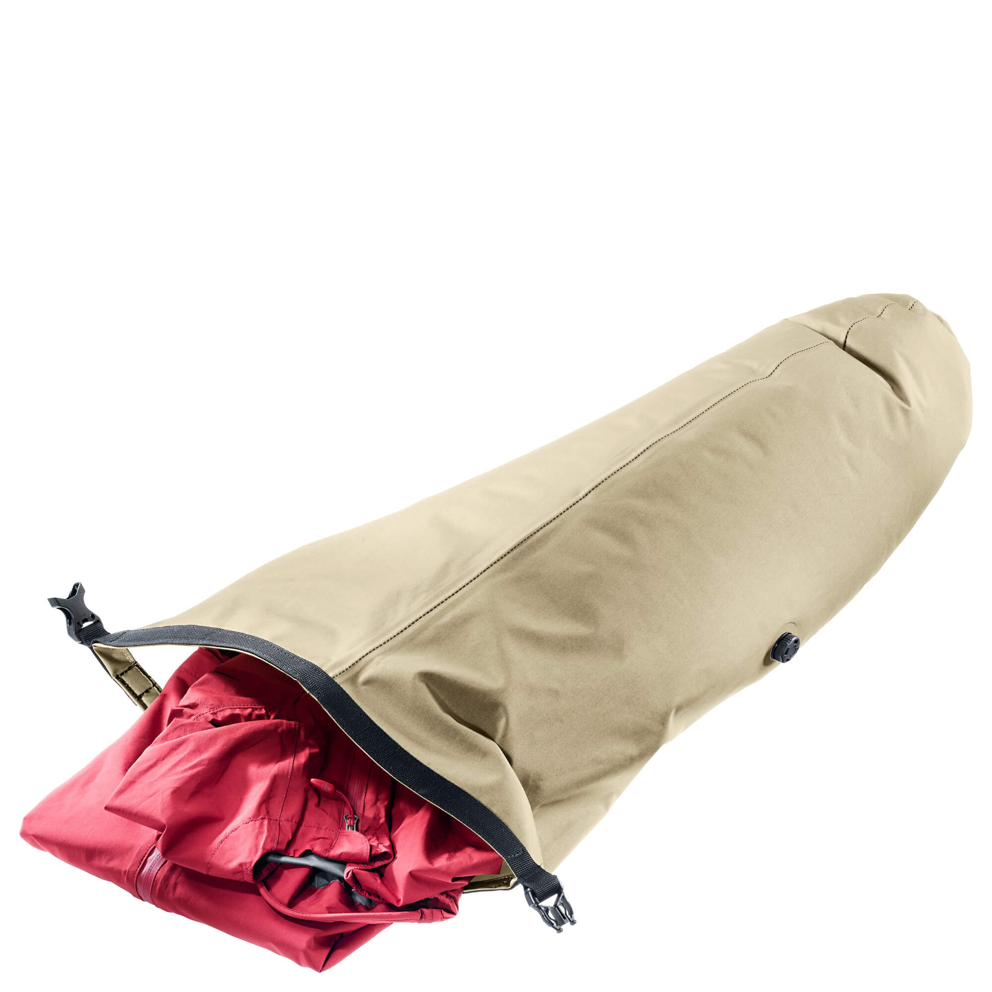- Komprimierbarer Packsack – mit Rolltop-Verschluss und Ventil zur Volumenreduzierung