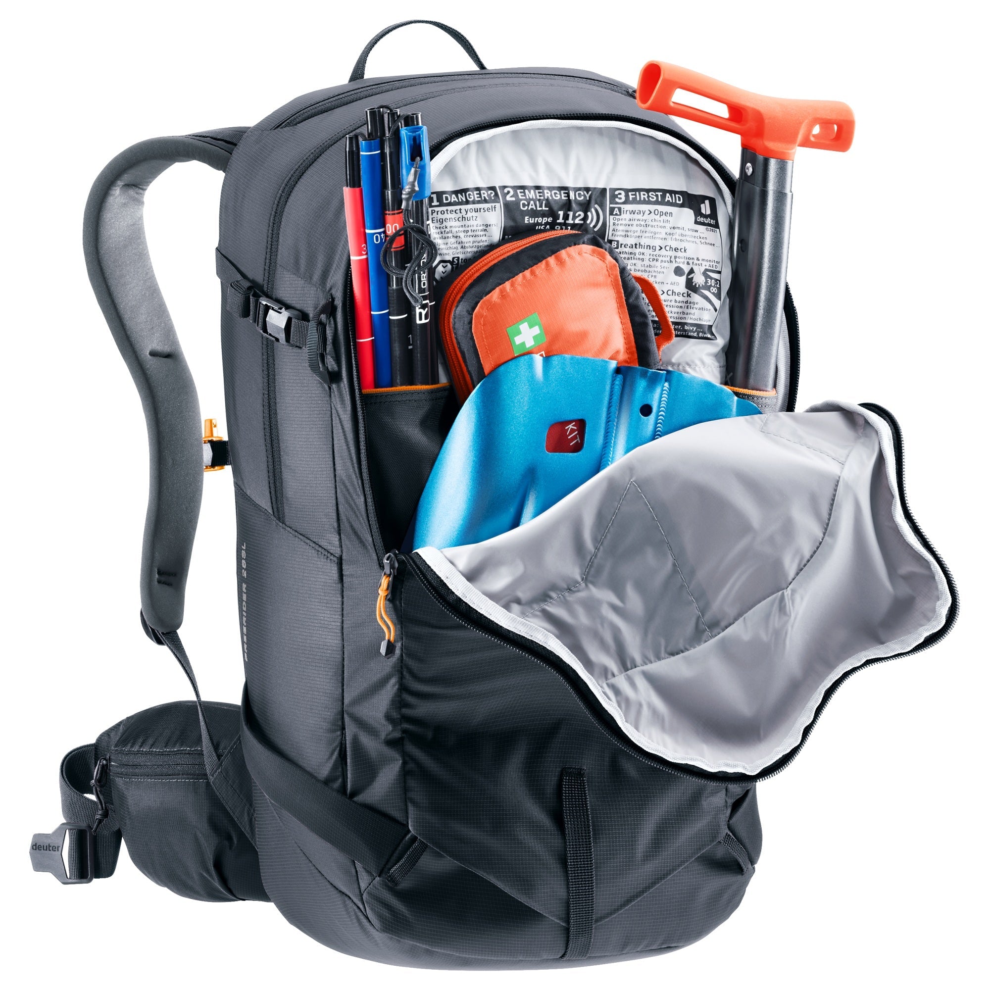 Spezielles Fach für Lawinensicherheitsausrüstung mit Fronttasche für schnelle Erreichbarkeit