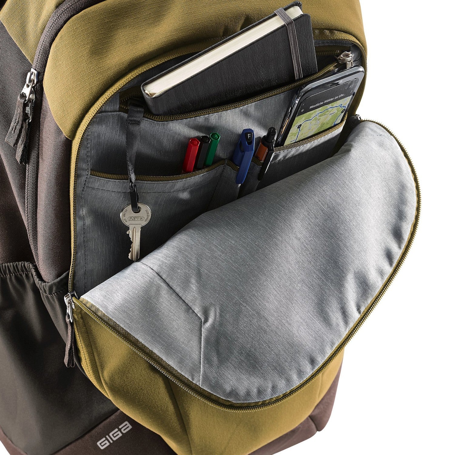 - Gepolstertes Hauptfach – sichert Laptops bis 15,6" und wichtige Dokumente