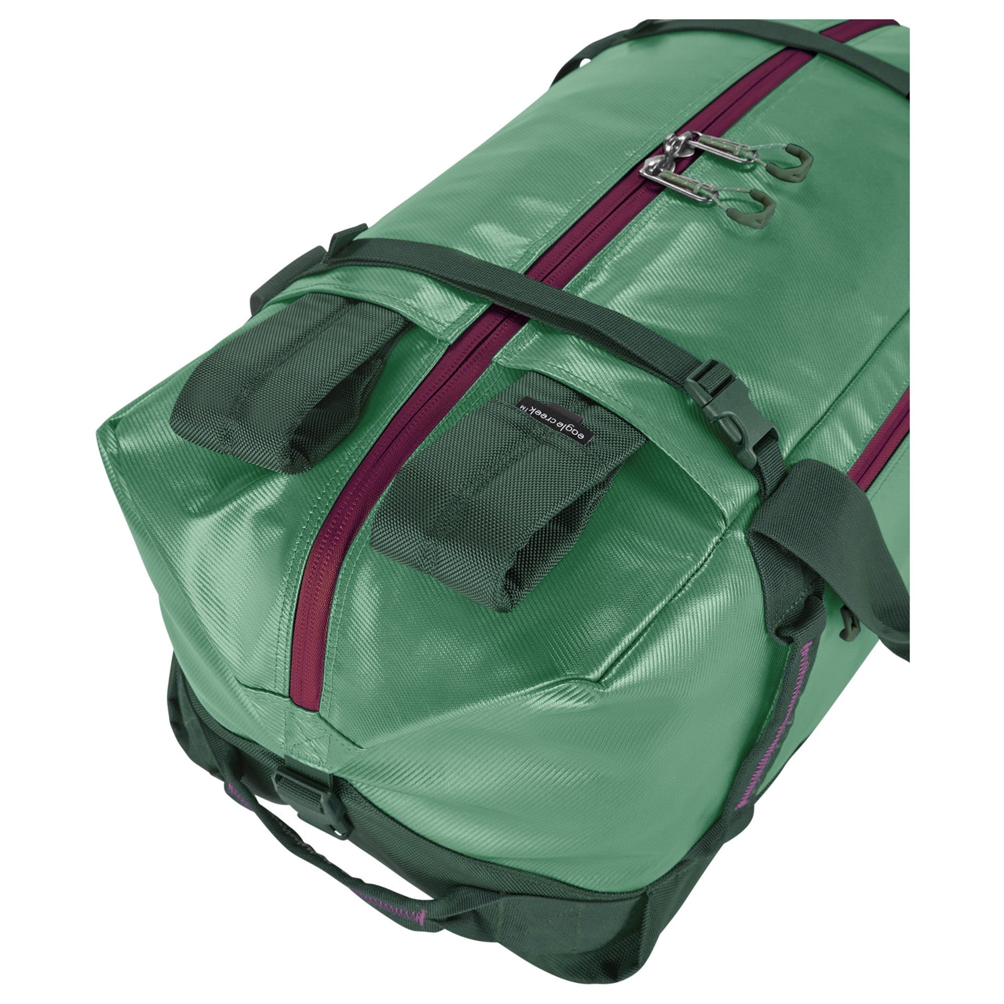 Die Eagle Creek selection Migrate Duffel 60 ist eine funktional gestaltete Reisetasche in einem dezenten Willow-Grün, die sich durch ihre Robustheit und vielseitige Tragemöglichkeiten auszeichnet.