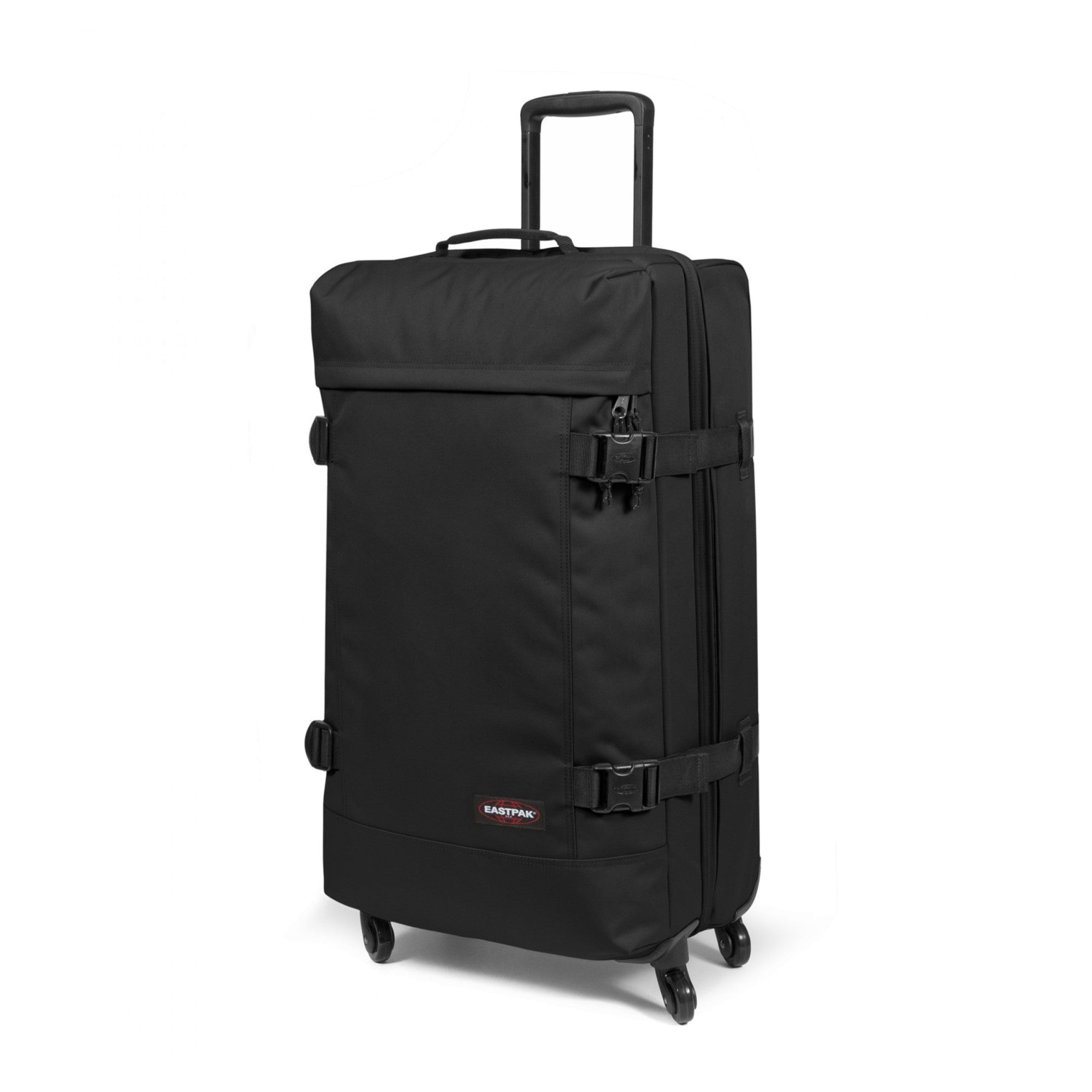 Der Eastpak selection Trans4 ist ein robuster 4-Rollen-Trolley in klassischem Schwarz, der mit einem großzügigen Volumen von 80 l auf längeren Reisen überzeugt.