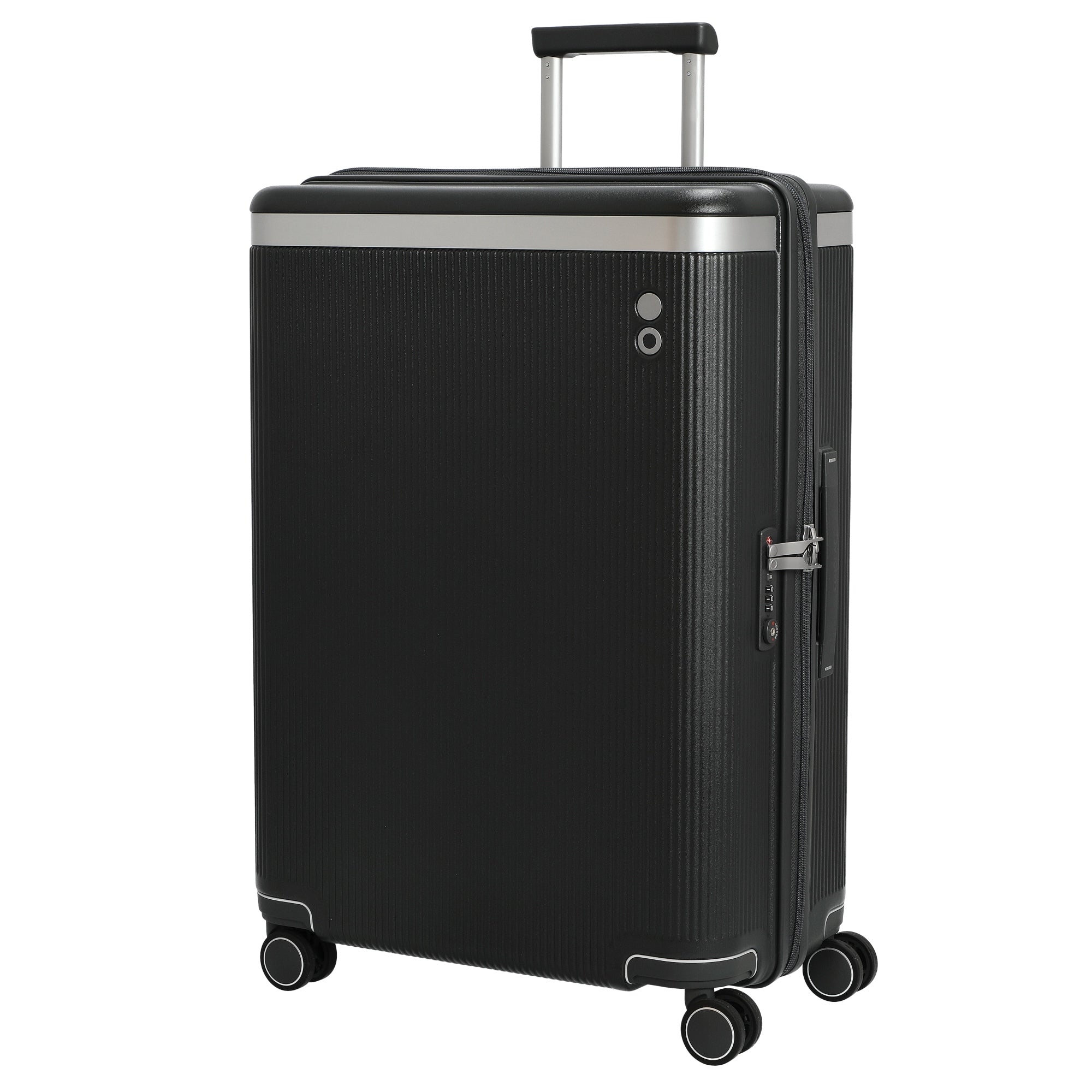 Der PC142Y-M darkgrey ist ein hochwertiger 4-Rollen-Trolley, der durch sein modernes Design und seine robuste Bauweise überzeugt. Mit einem Volumen von 77 Litern bietet er ausreichend Platz für längere Reisen oder Geschäftsaufenthalte. Das leichte Gewicht von 4,0 Kilogramm sorgt für komfortables Handling, ohne auf Stabilität zu verzichten.