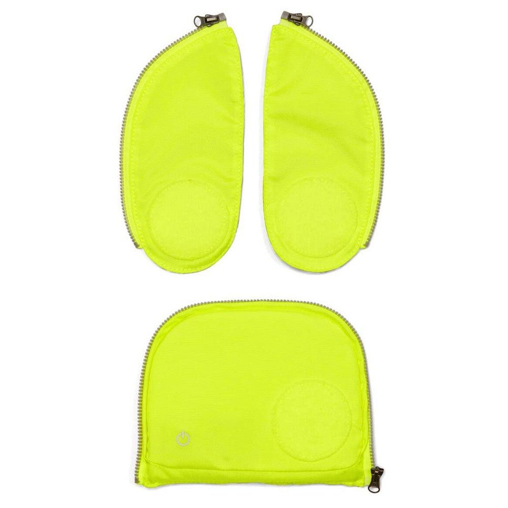Das dreiteilige Zip-Set von Ergobag in leuchtendem Gelb erhöht die Sicherheit bei schlechten Lichtverhältnissen und Dunkelheit.