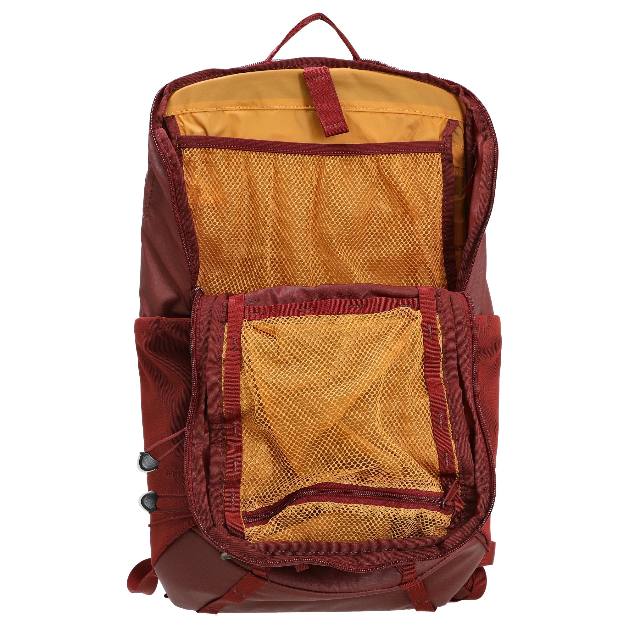 Ein sportlicher, kompakter Outdoor-Rucksack in ansprechendem Burgunderton, ideal für dynamische Tagestouren und schnelle Abenteuer.