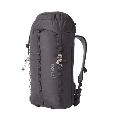 Dieser schwarze Exped Rucksack ist ein funktionaler Begleiter für Bergsteiger und Outdoor-Fans, die Wert auf langlebige und praktische Ausrüstung legen.