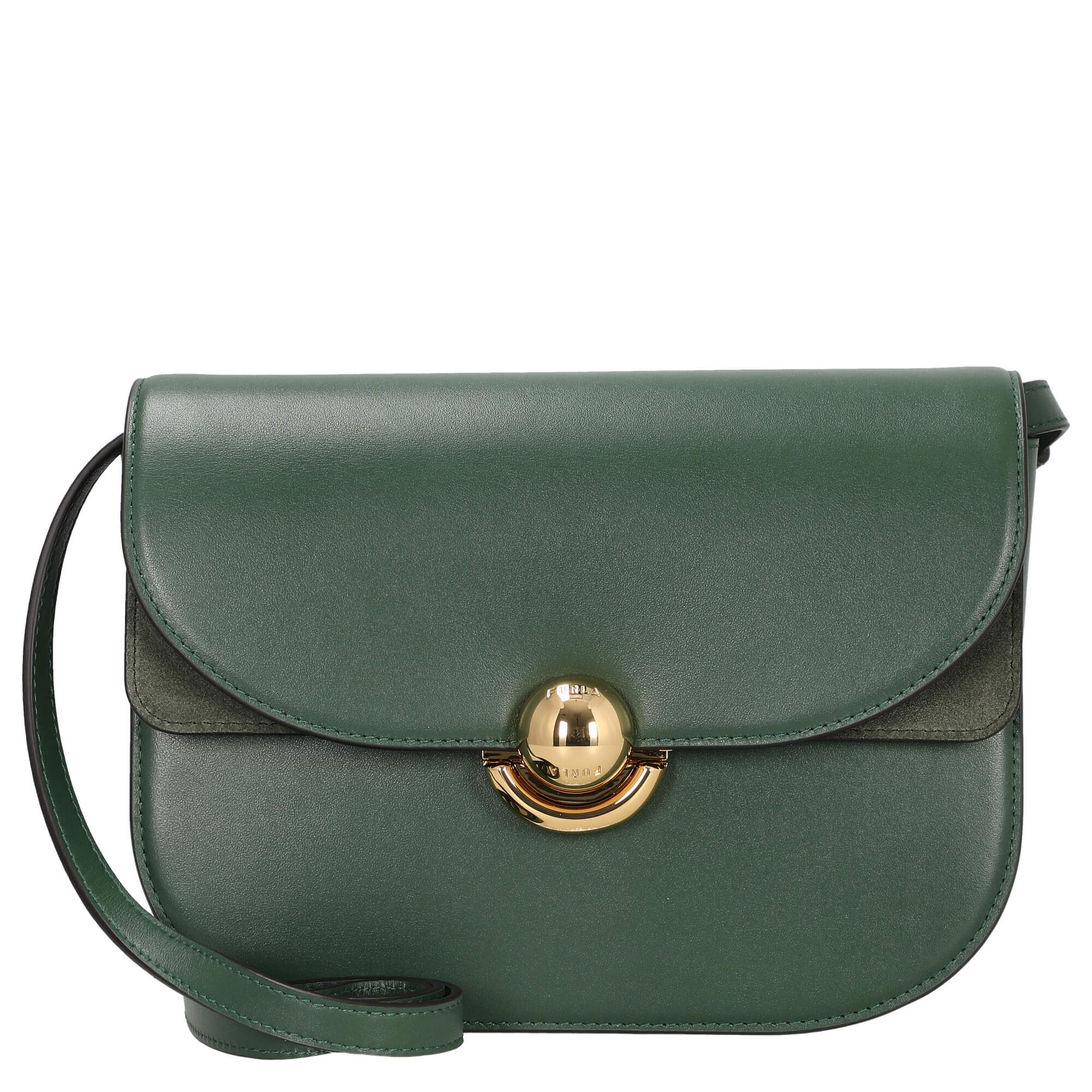 Die Furla Sfera S Umhängetasche in elegantem Dunkelgrün überzeugt durch ihr zeitloses Design und hochwertige Verarbeitung aus feinem Leder. Mit ihrer klassischen Satteltaschenform setzt sie stilvolle Akzente zu jedem Outfit und passt perfekt zu modisch interessierten Frauen.