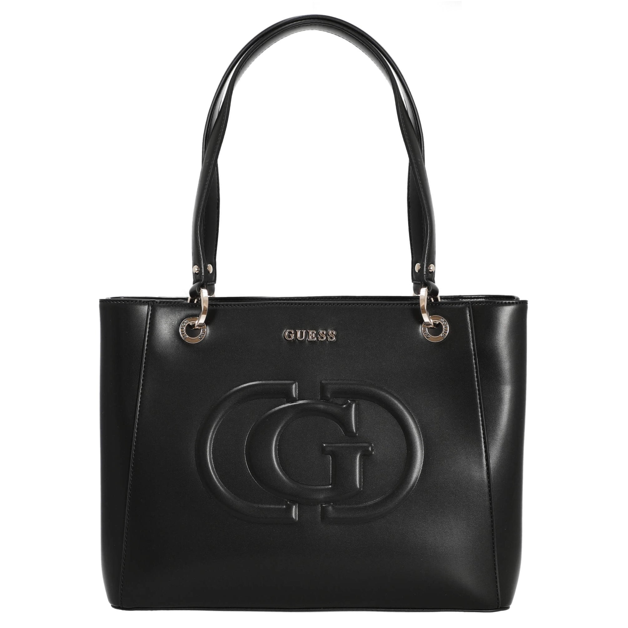 - Metallisches Guess-Logo: Ein hochwertiges Detail, das dem Shopper eine edle Note verleiht.