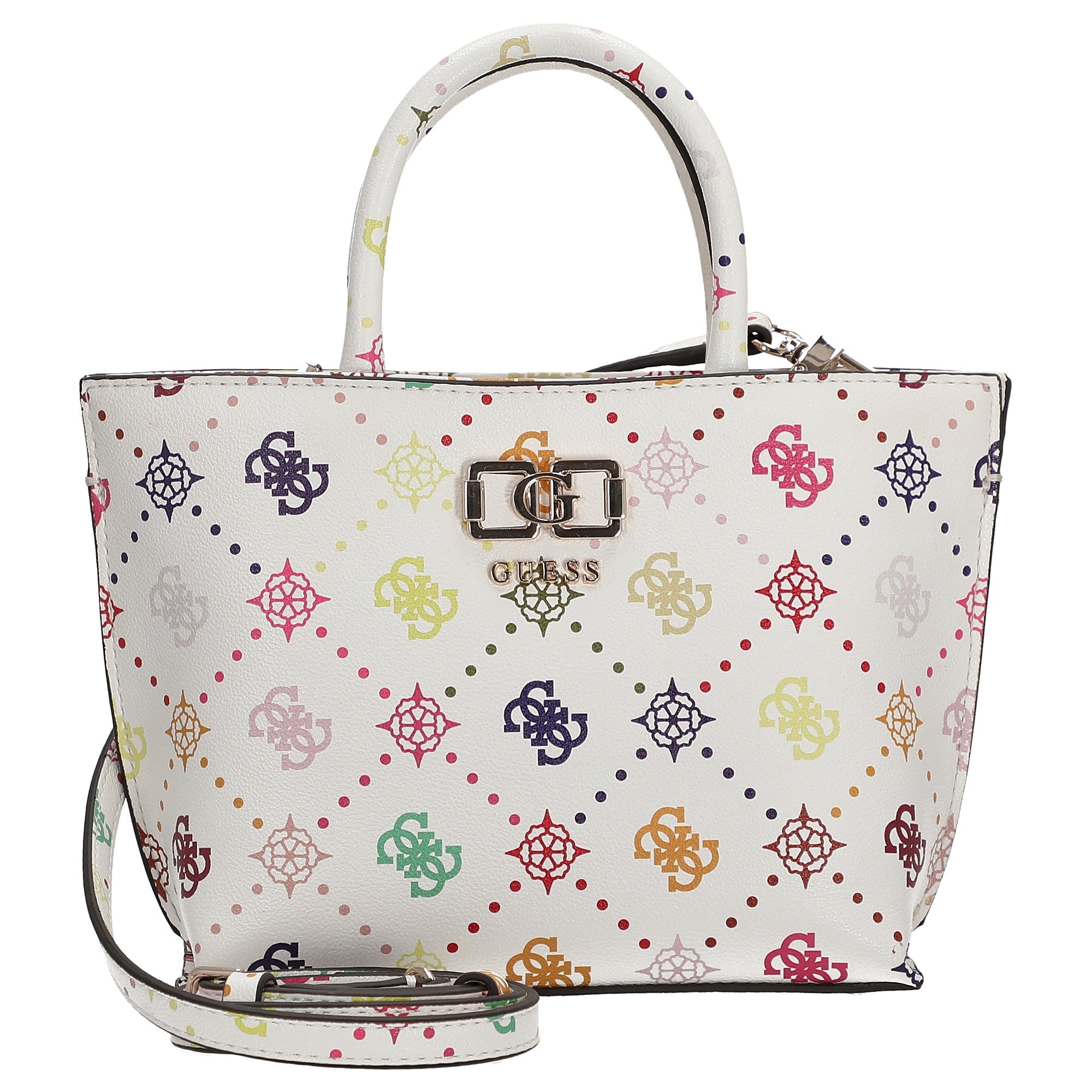 Diese Henkeltasche von GUESS ist ein eleganter Begleiter, der sich mühelos zu verschiedenen Outfits kombinieren lässt und jedem Look eine moderne Note verleiht.