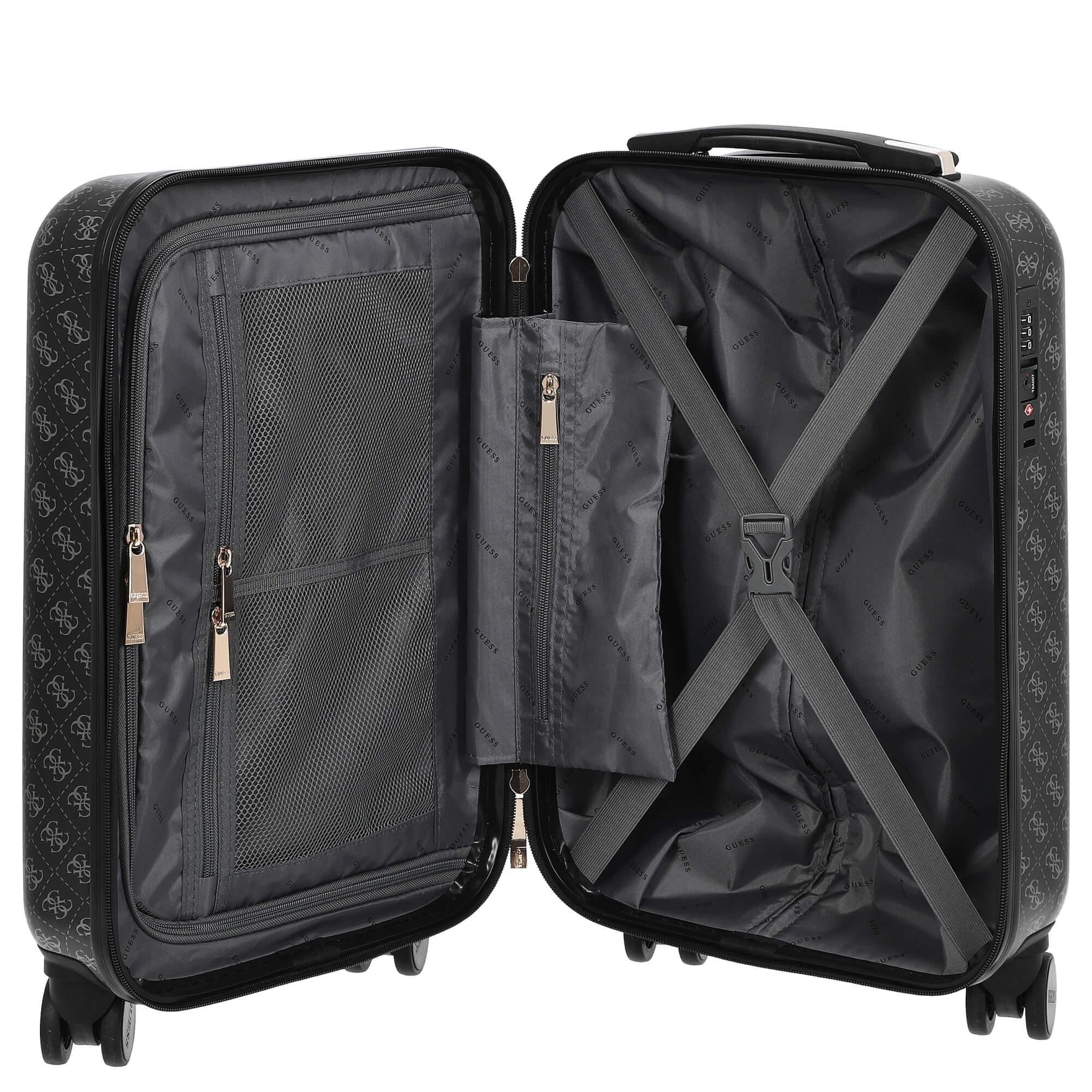 Der Guess Jesco Kabinentrolley in der Farbe Coal überzeugt mit einem funktionalen und robusten Design, das sich ideal für häufige Reisen eignet. Mit seinen kompakten Maßen von 54 cm ist er optimal als Handgepäck einsetzbar und bietet durchdachte Details für eine praktische Handhabung.