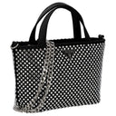 Ein modisches Highlight für stilbewusste Frauen, das Eleganz und Vielseitigkeit vereint. Die Guess Tasmin Mini Henkeltasche in schwarzer Farbe besticht durch ihr kompaktes Design und hochwertige Details.