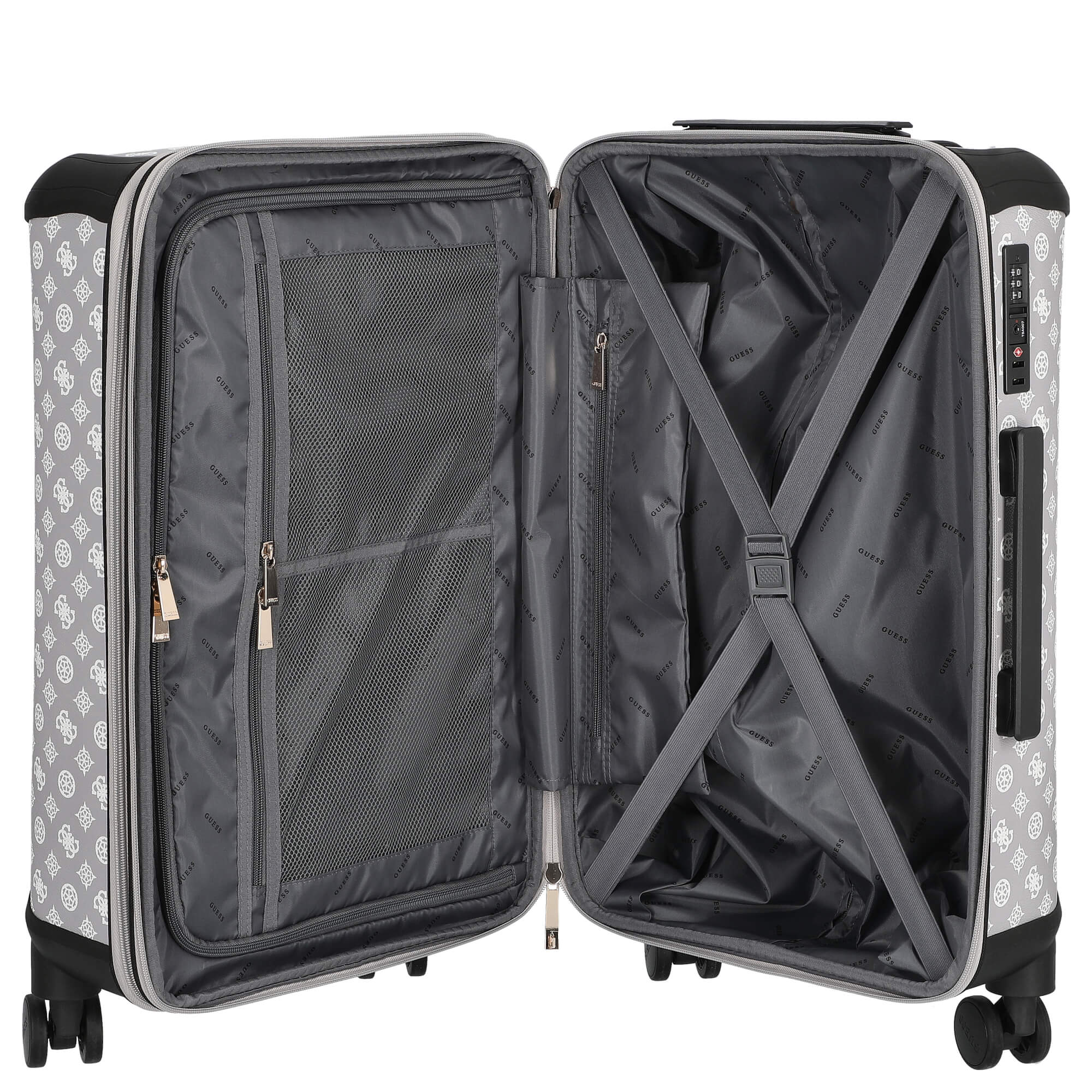 Der Guess Trolley in Lavendar Grey ist ein robuster und funktional gestalteter Begleiter, der sich besonders für anspruchsvolle Reisende eignet, die Wert auf Organisation und Sicherheit legen.