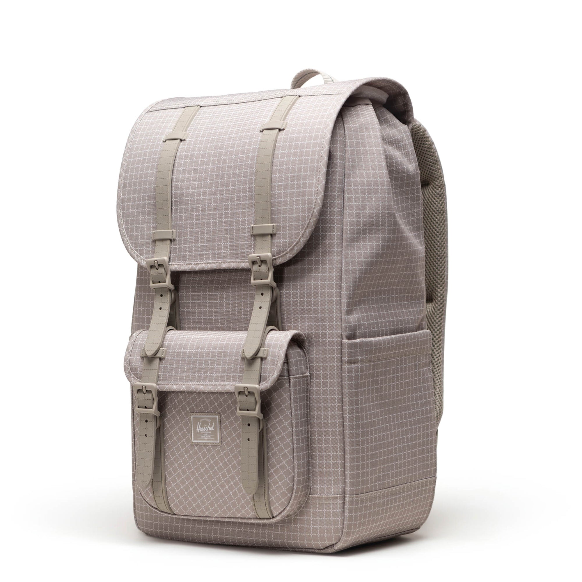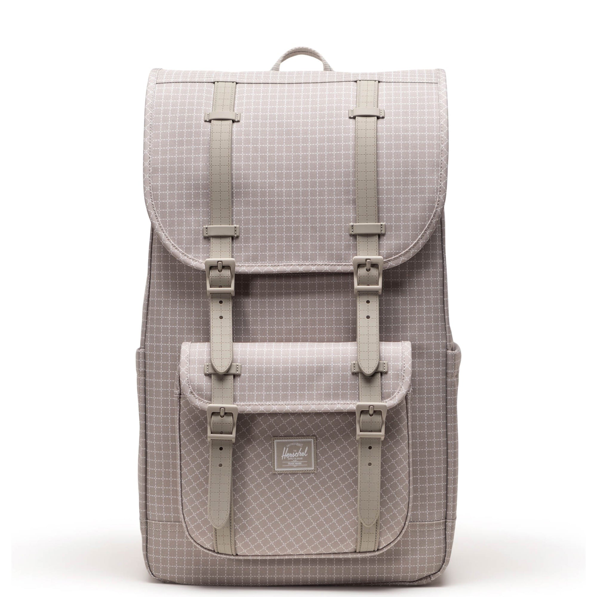 Der Herschel Little America Rucksack in der Farbe grid-london fog verbindet modernes Design mit nachhaltiger Funktionalität für den Alltag in Stadt, Uni und Freizeit.