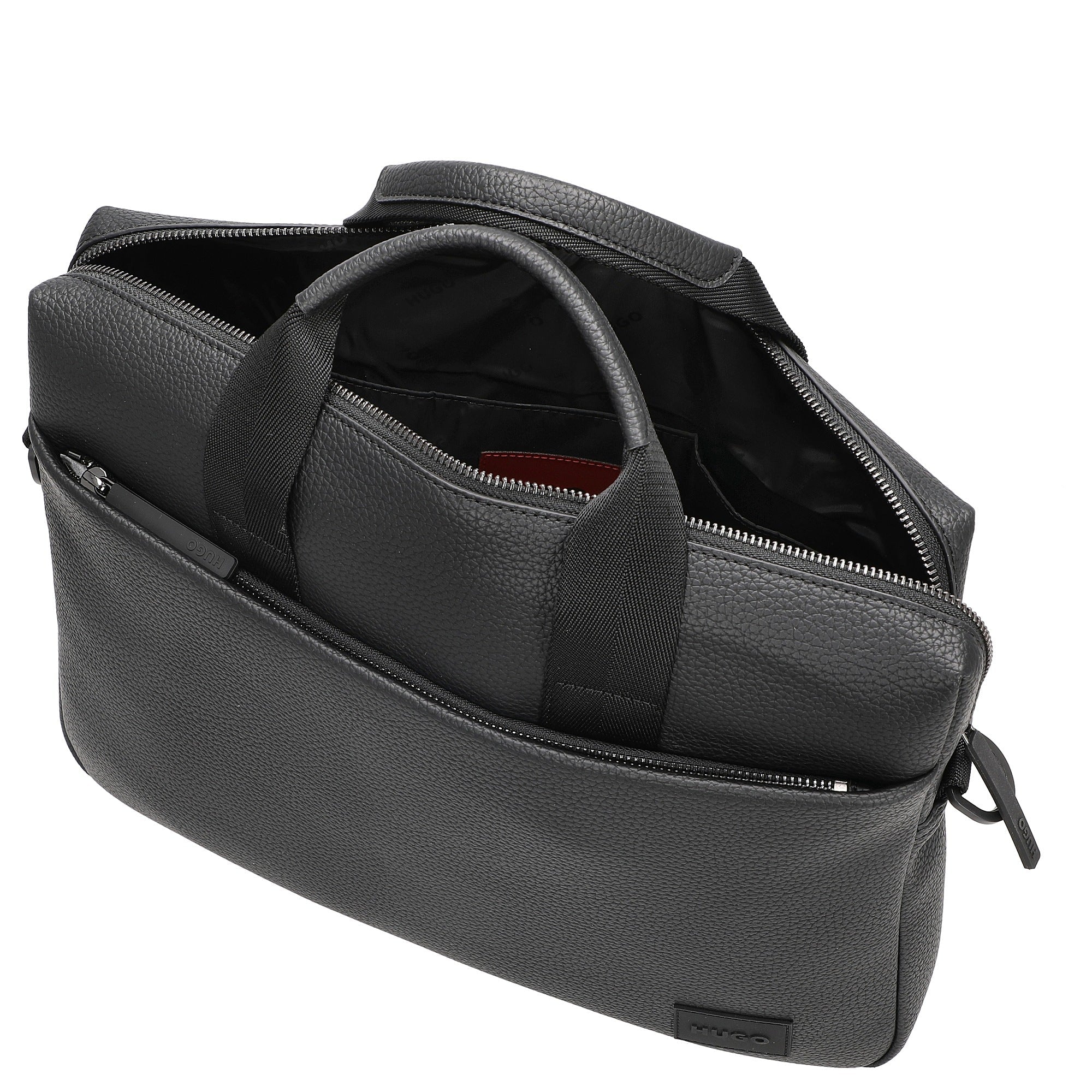 Ob im Büro oder auf Geschäftsreisen – diese schwarze HUGO Aktentasche verbindet stilvollen Auftritt mit funktionalem Komfort.