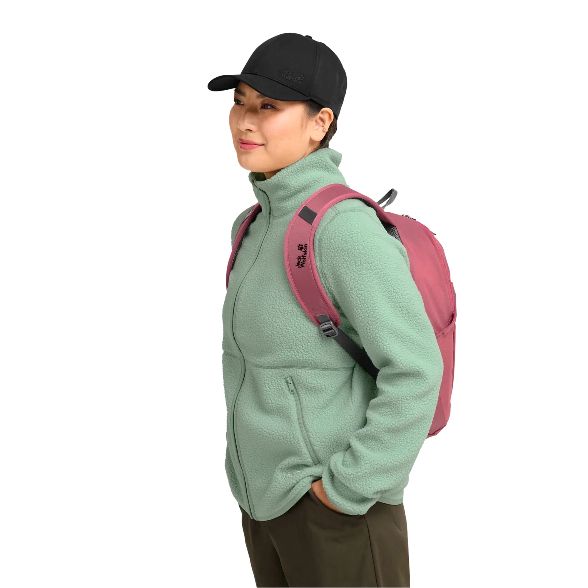 Ein vielseitiger Tagesrucksack von Jack Wolfskin in der Farbe cool rose, der Komfort und Funktionalität für Frauen verbindet.