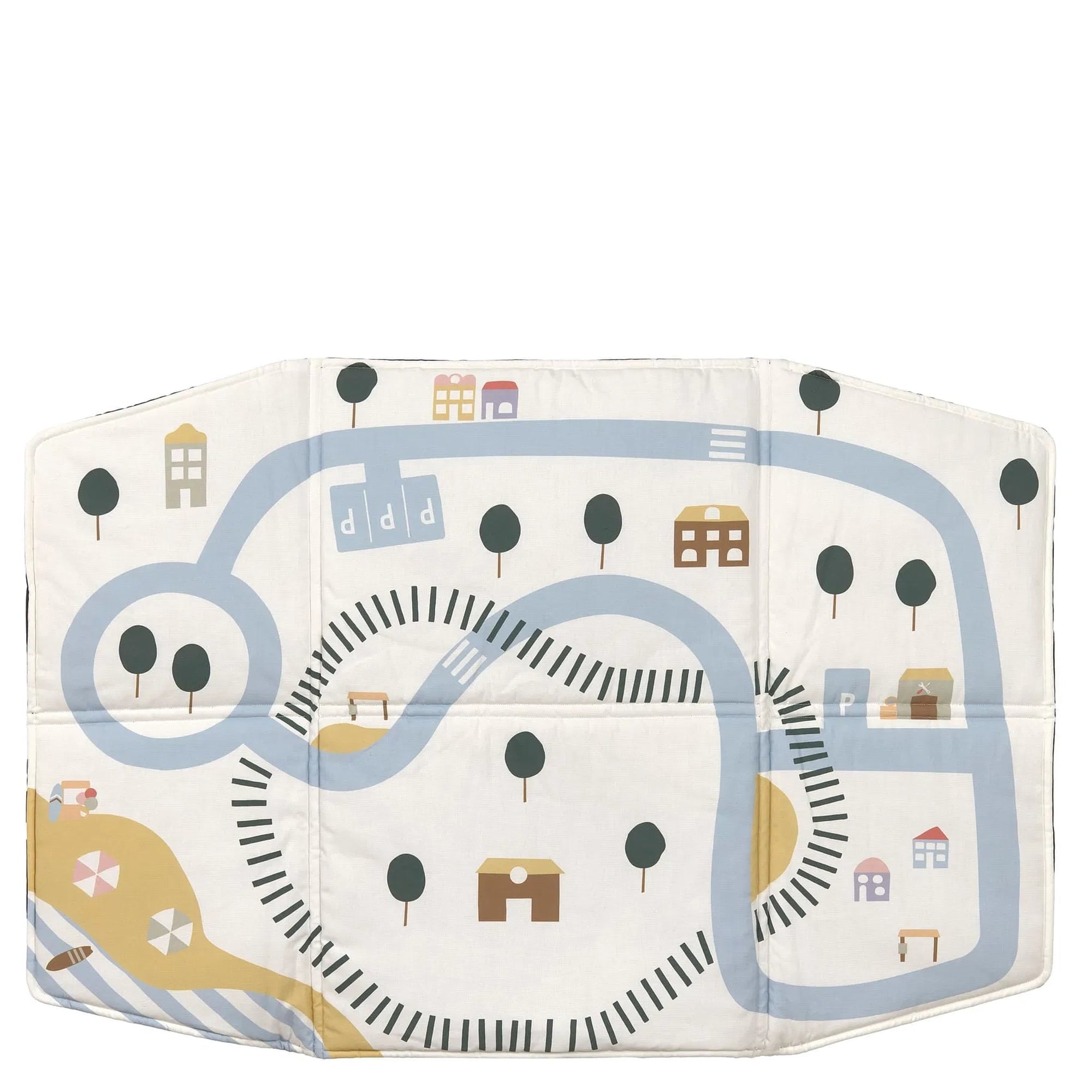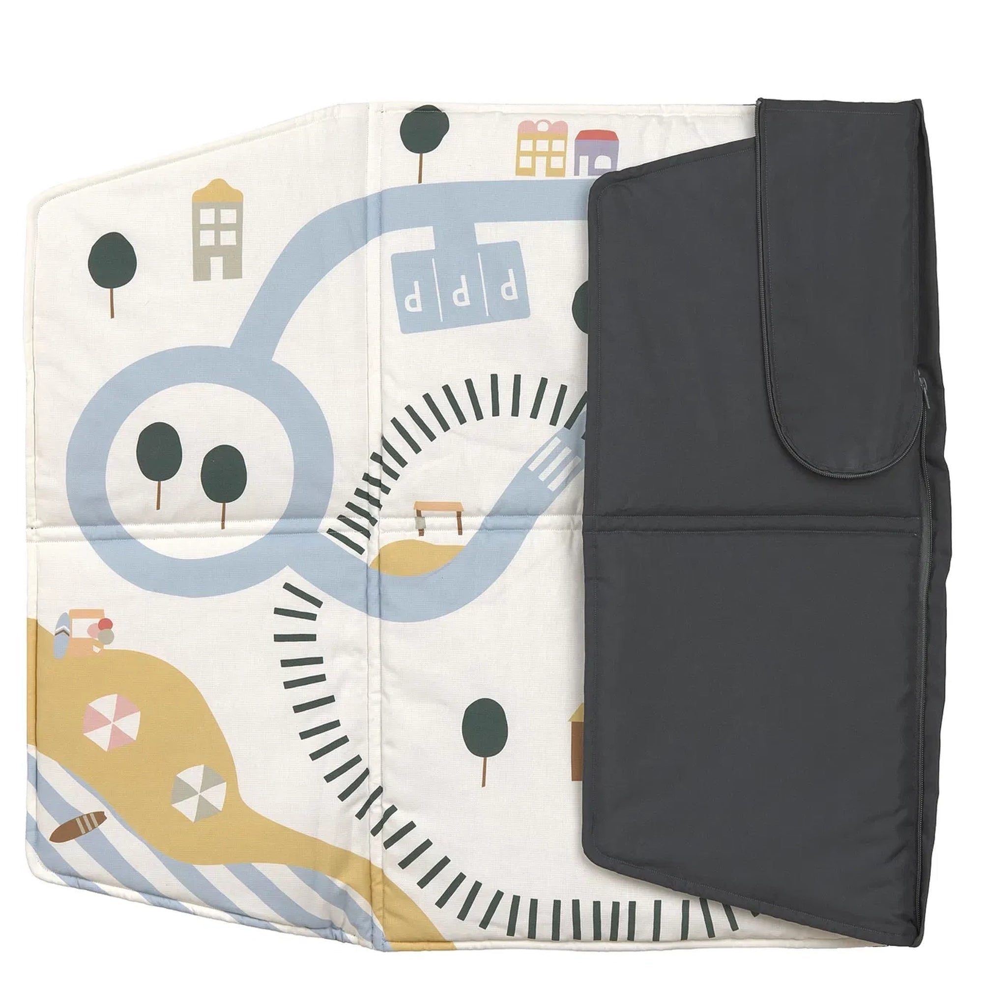 - Bedruckte Innenseite – die detailreiche „Spielstadt“ mit Straßen, See, Strand, Häusern und Parkplätzen regt die Fantasie der Kleinen an