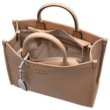 Die Liu Jo Ridhi Henkeltasche in elegantem dark cipria ist eine stilvolle Begleiterin für modebewusste Frauen, die Wert auf hochwertige Details und zeitloses Design legen.