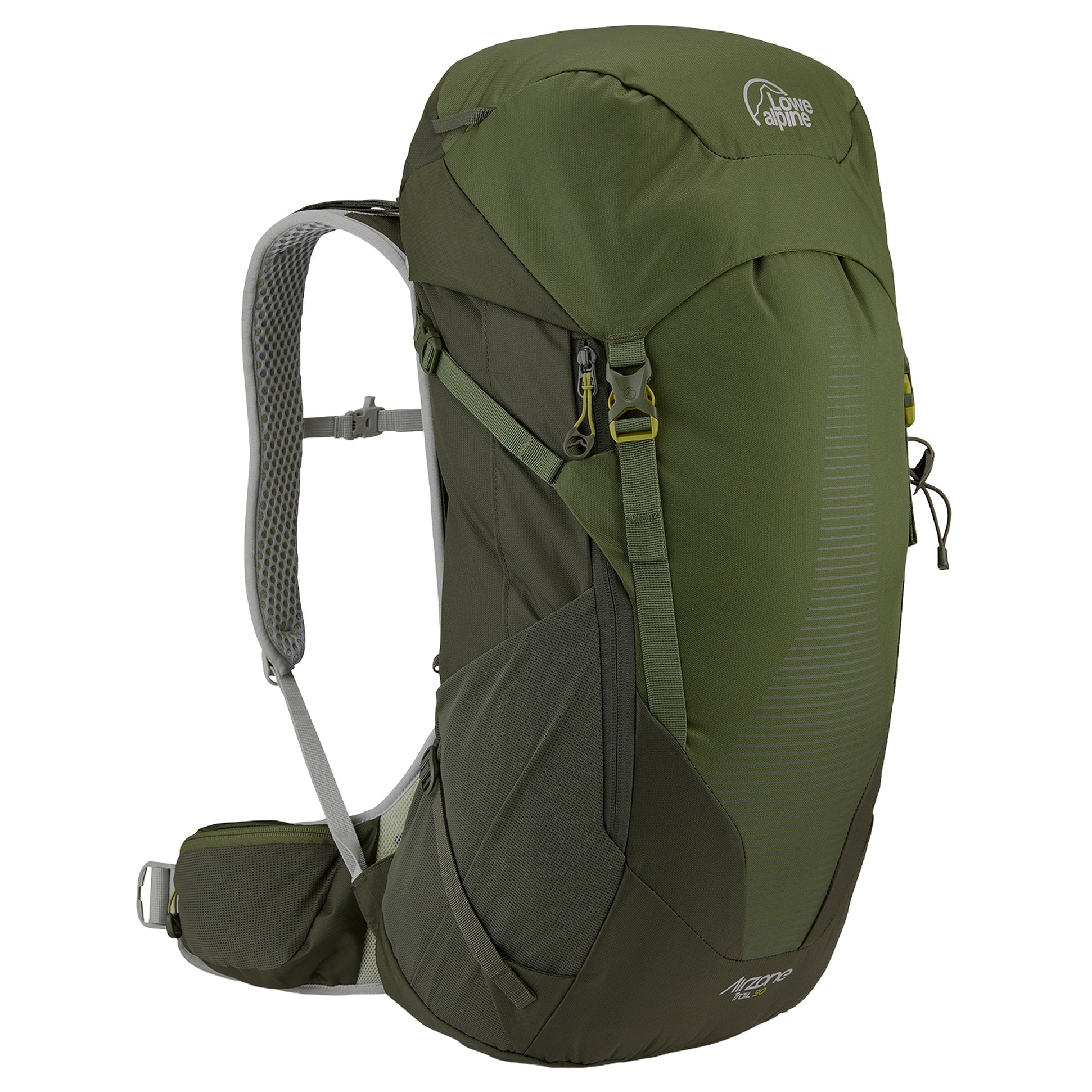 Der Lowe Alpine AirZone Trail 30 ist ein vielseitiger Wanderrucksack, der mit seinem durchdachten Tragesystem auch anspruchsvolle Touren komfortabel macht. In army/bracken gehalten, verbindet er robustes Design mit praktischen Funktionen für Naturfreunde und Bergsteiger.