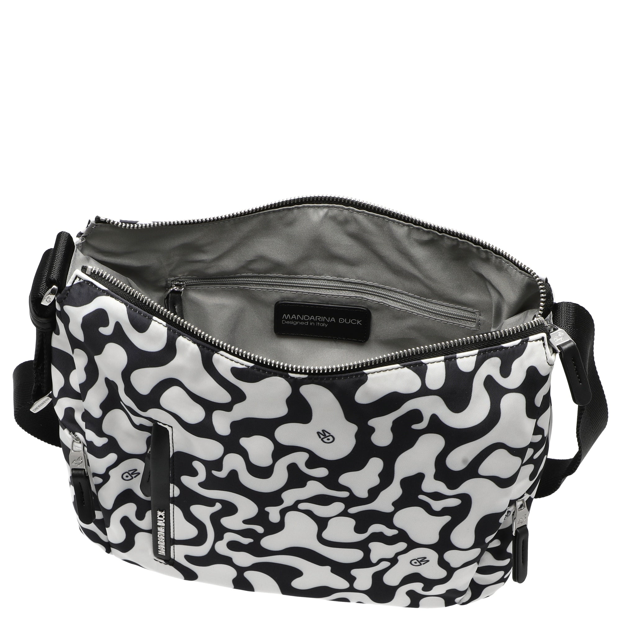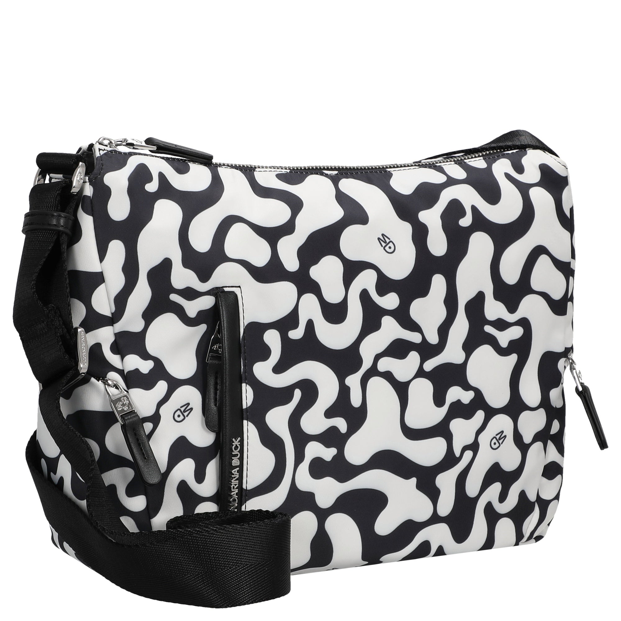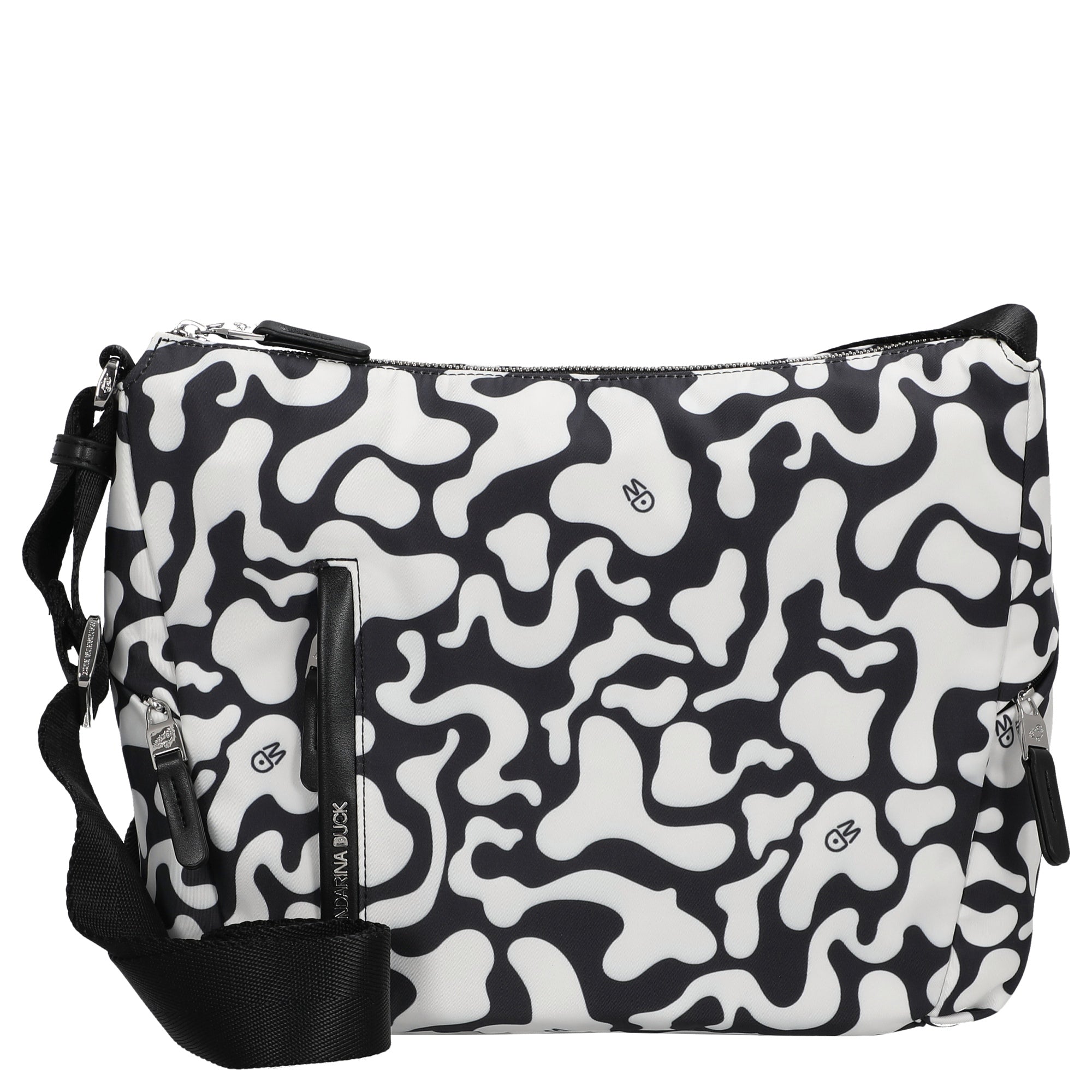 Ob beim Stadtbummel oder im Büro – die Mandarina Duck Hunter Moire Umhängetasche in schwarz-weiß bringt Stil und Komfort in Ihren Alltag.