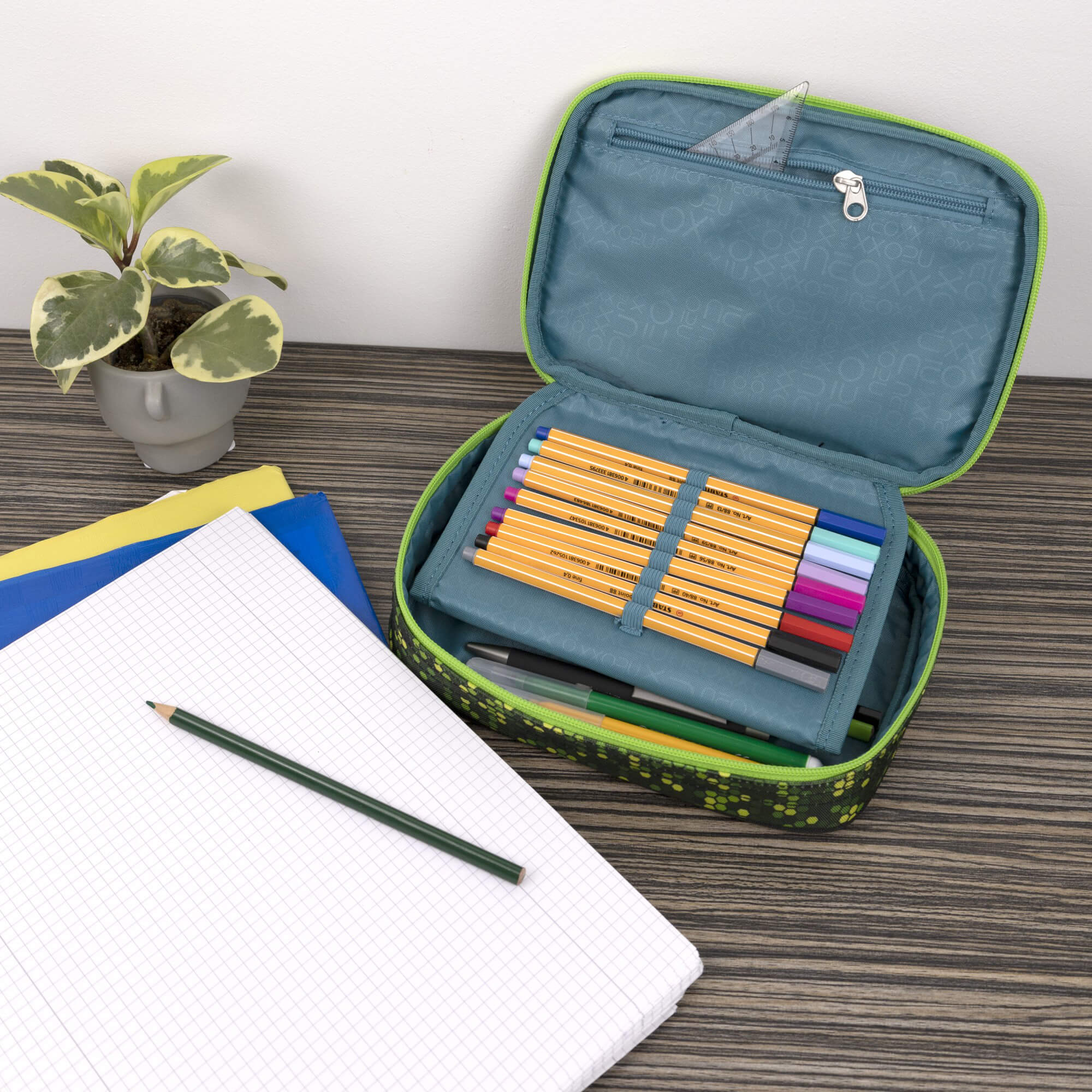 Das funktional gestaltete Mäppchen ist ein zuverlässiger Begleiter für den Schulalltag und unterstützt eine strukturierte Aufbewahrung von Schreibutensilien.