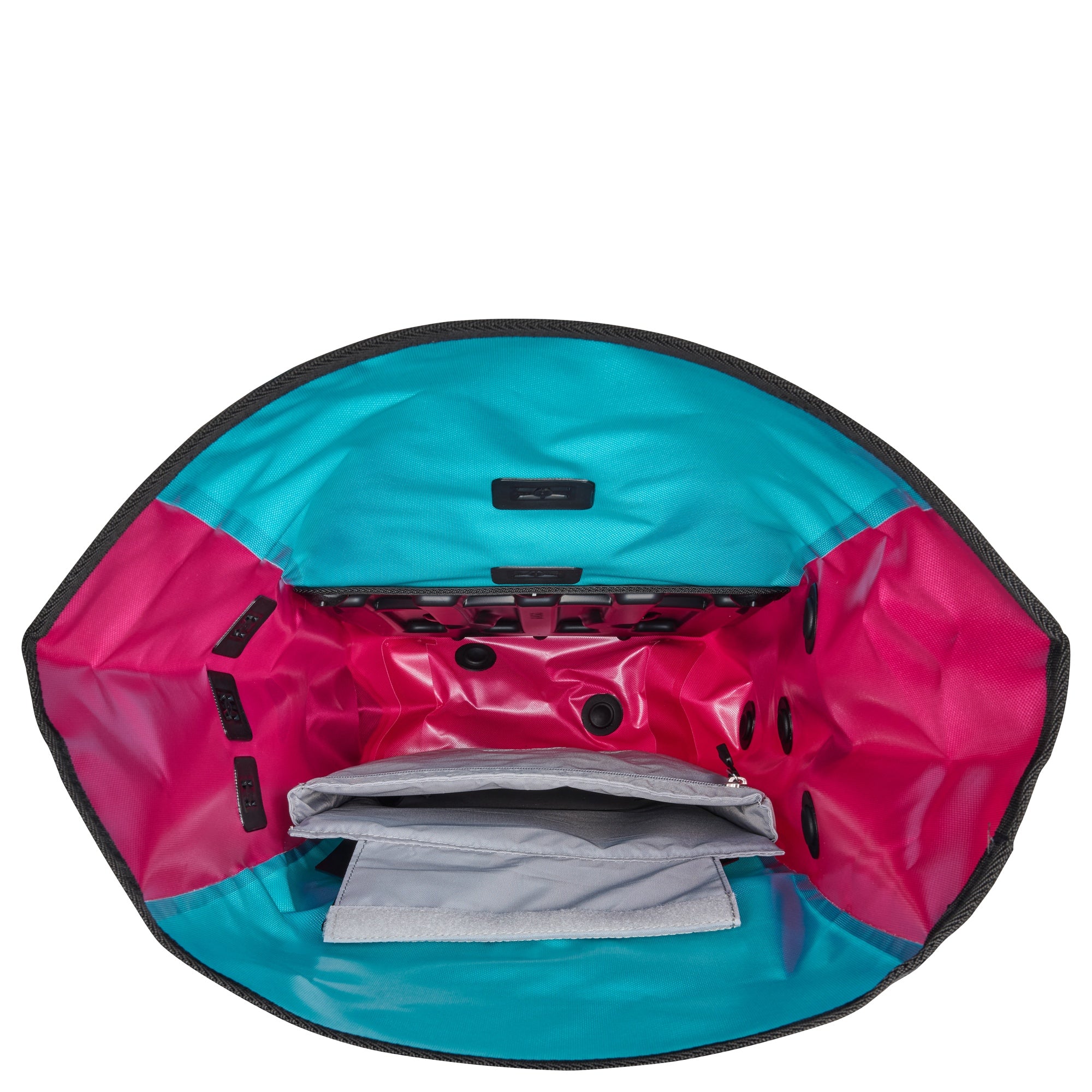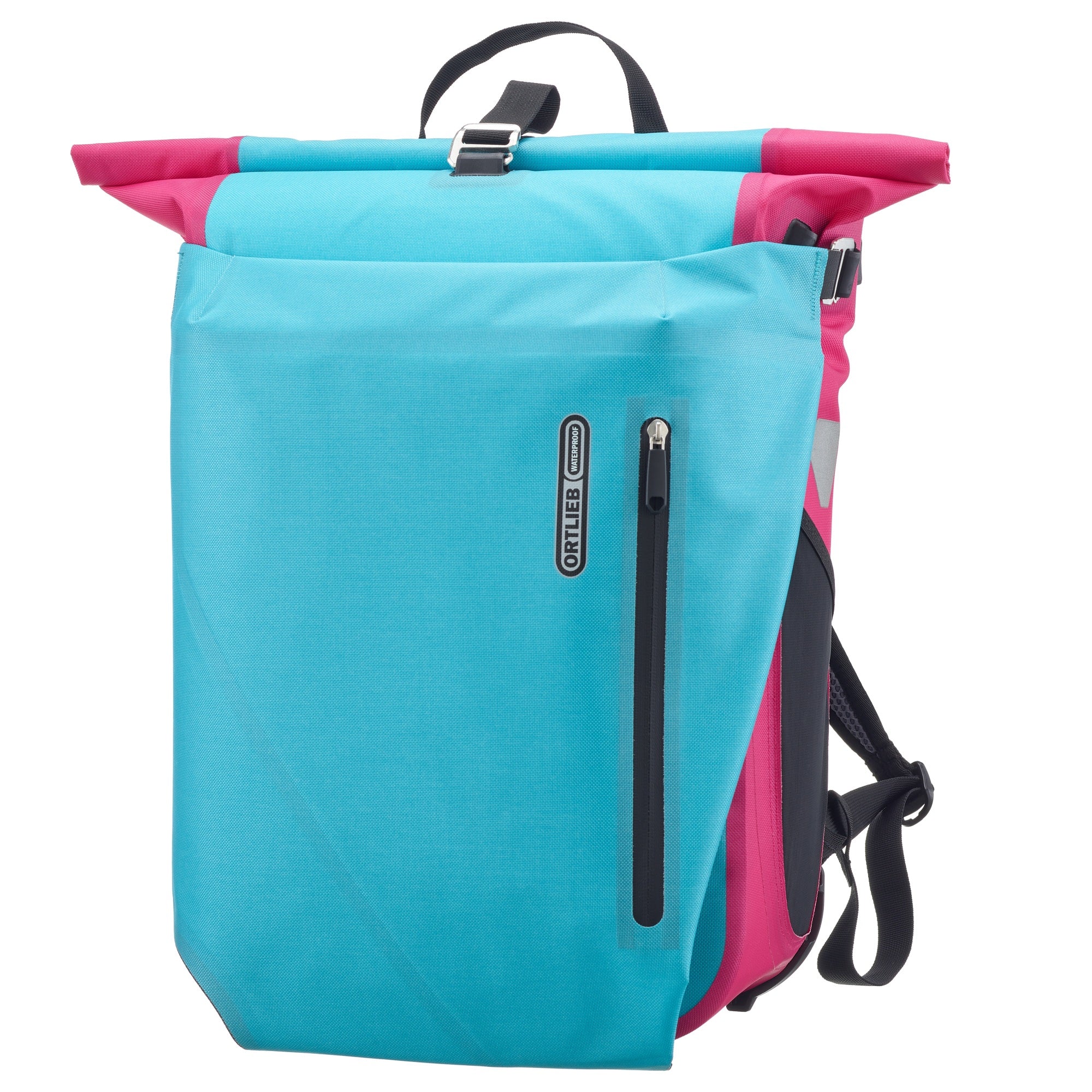 Der Ortlieb Vario Cyber 26 in der Farbkombination blue cyber pink ist ein funktionaler Begleiter für sportliche Pendler und Fahrradliebhaber, die Wert auf Flexibilität und Schutz legen.