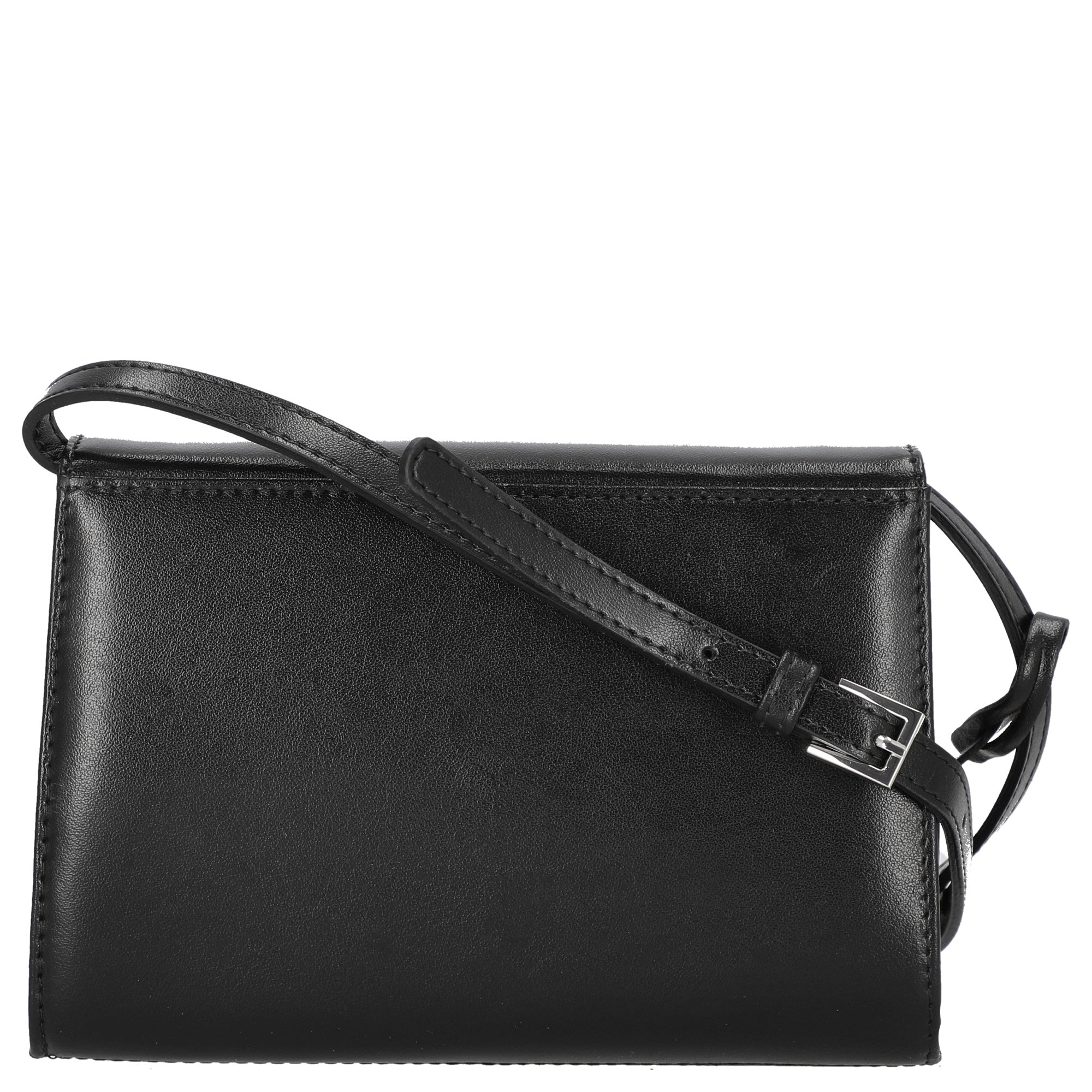 Eine stilvolle Umhängetasche aus der Serie Auguri, die mit ihrem klaren, zeitlosen Design und dem edlen schwarzen Rindsleder modisch anspruchsvolle Frauen anspricht.