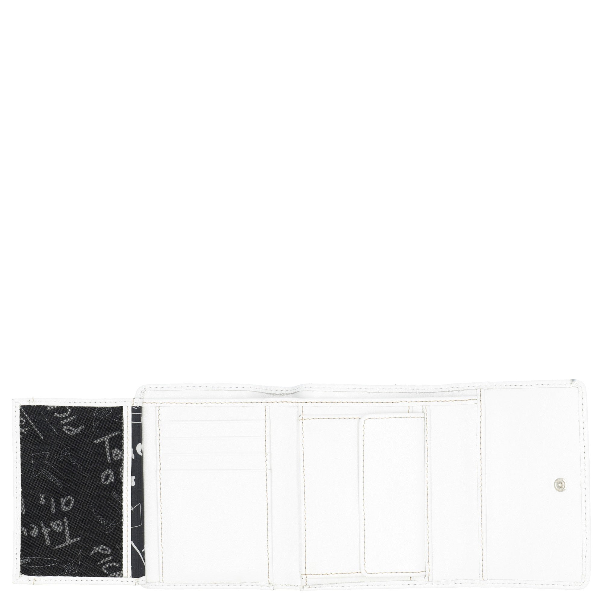 Außen überzeugt die Geldbörse mit einem sicheren Druckknopfverschluss, der für einen einfachen Zugang sorgt und gleichzeitig die Inhalte schützt. Mit einem Gewicht von nur 0,13 Kilogramm ist sie leicht und kompakt, sodass sie problemlos in jeder Handtasche Platz findet.