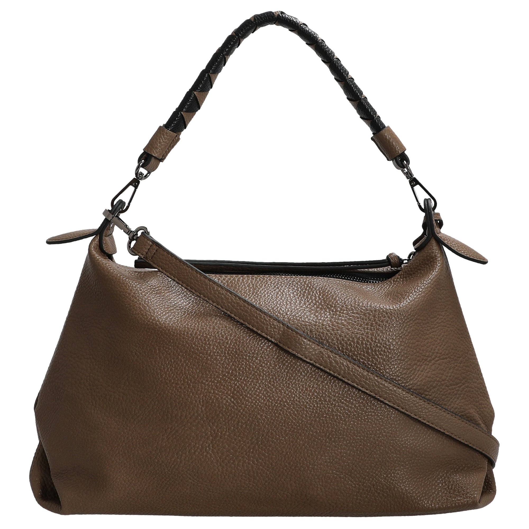 Flexibler Tragekomfort – dank kurzer, abnehmbarer Tragehenkel und verstellbarem Schultergurt lässt sich der Shopper individuell tragen