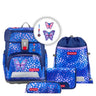 Der Step by Step Cloud Schulranzen in fröhlichem Blauton mit Schmetterlingsmotiven ist ein leichter Begleiter für Grundschüler, der Komfort und Umweltbewusstsein vereint.