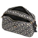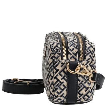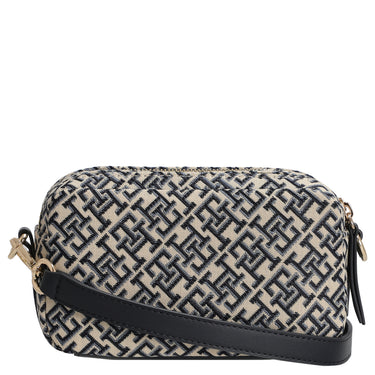 Die Tommy Hilfiger Jacquard Camera Umhängetasche in space blue besticht durch ihr modisches Jacquard-Monogramm und hochwertige Details, die jedem Outfit eine elegante Note verleihen.