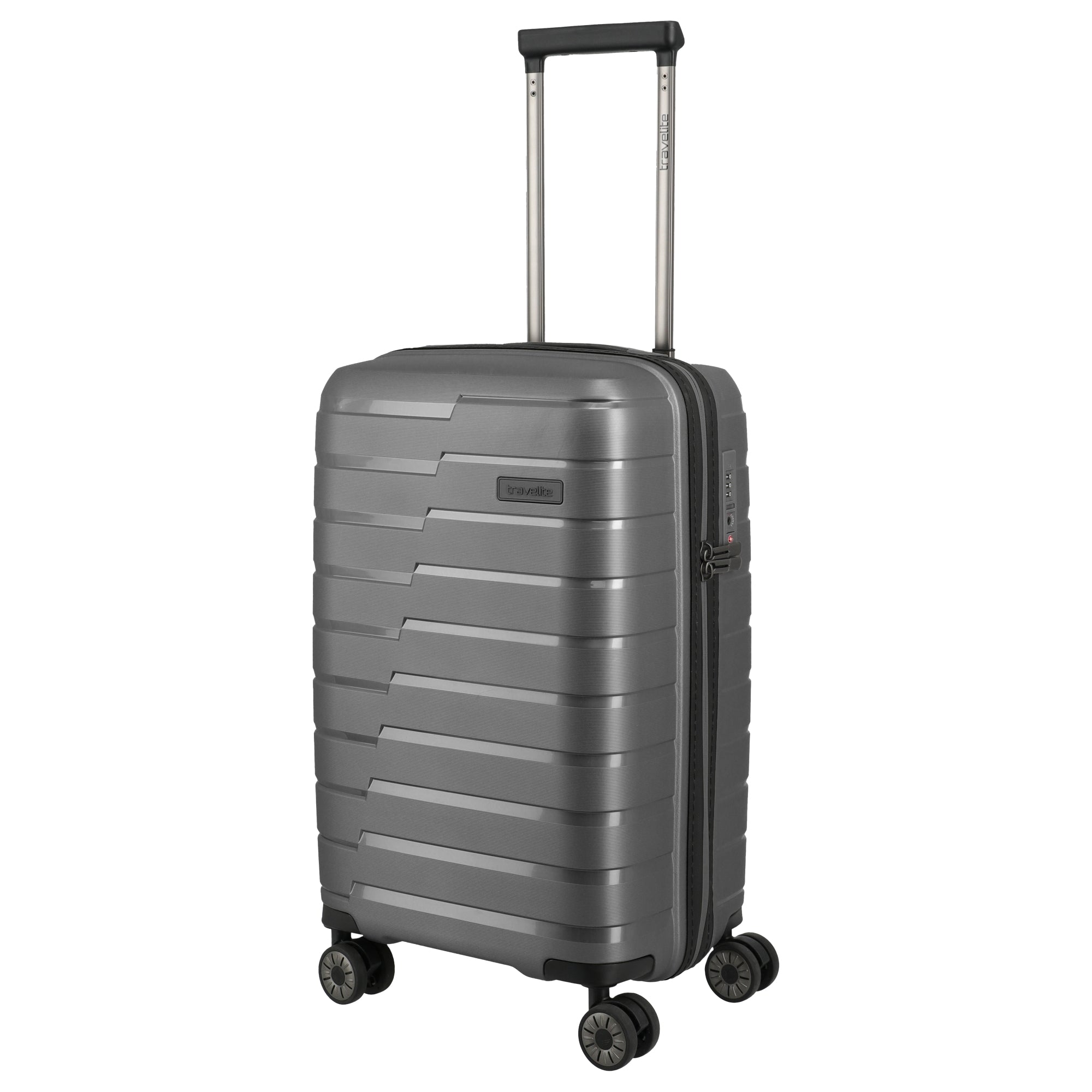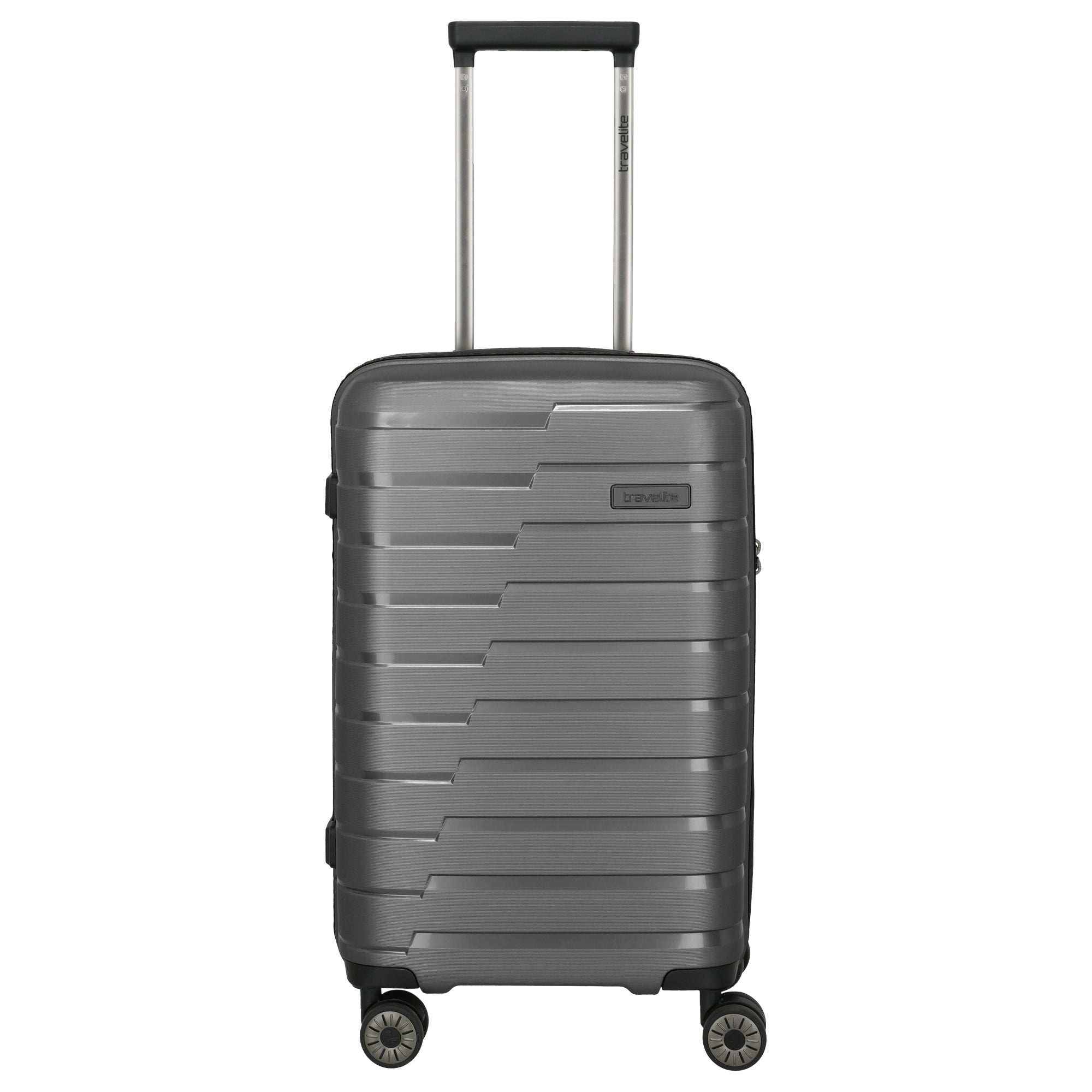 Ein robuster Kabinentrolley aus dem Hause Travelite, der mit funktionalen Details und widerstandsfähigem Material überzeugt. In der Farbe Anthrazit präsentiert sich der Koffer als zuverlässiger Begleiter für Kurztrips und Geschäftsreisen.
