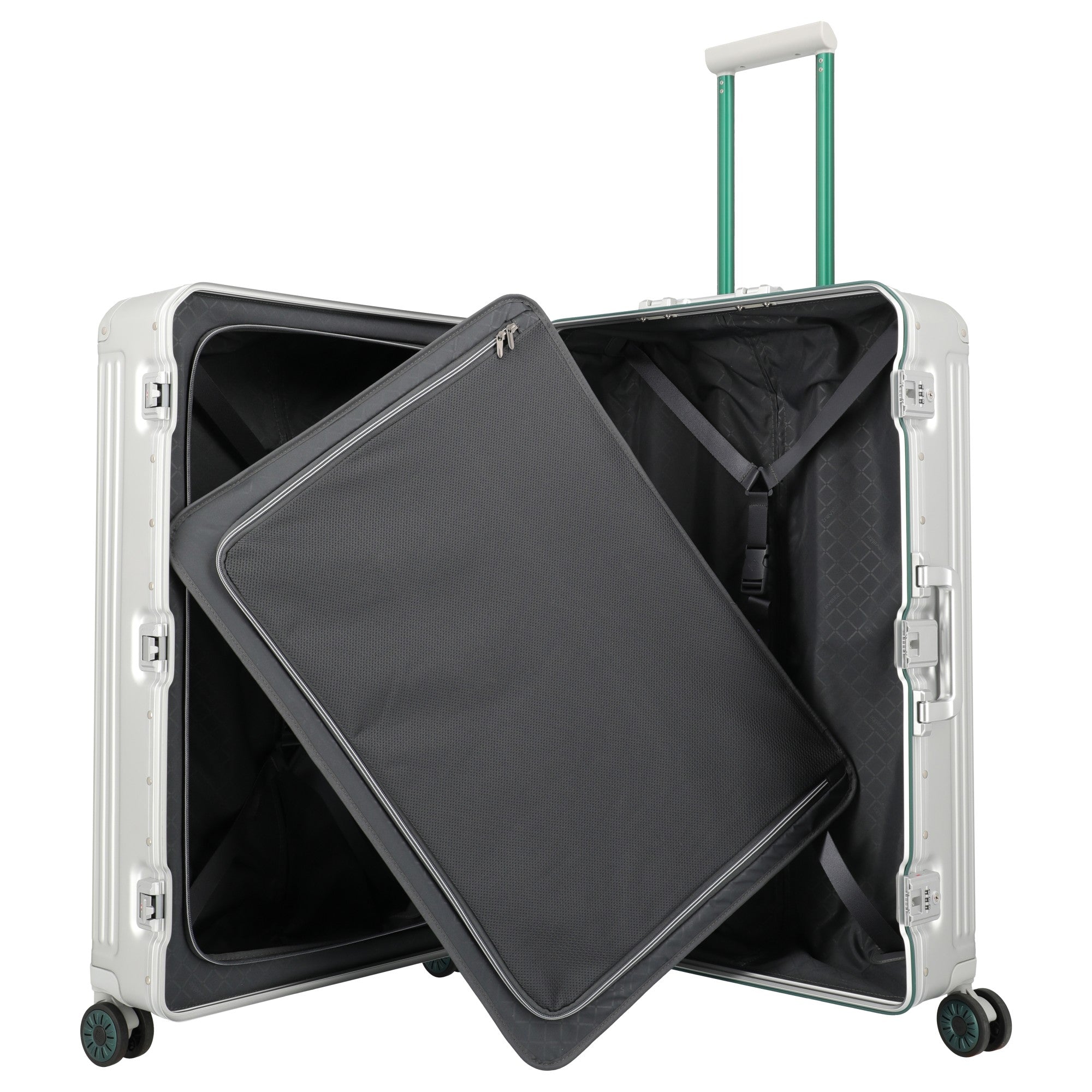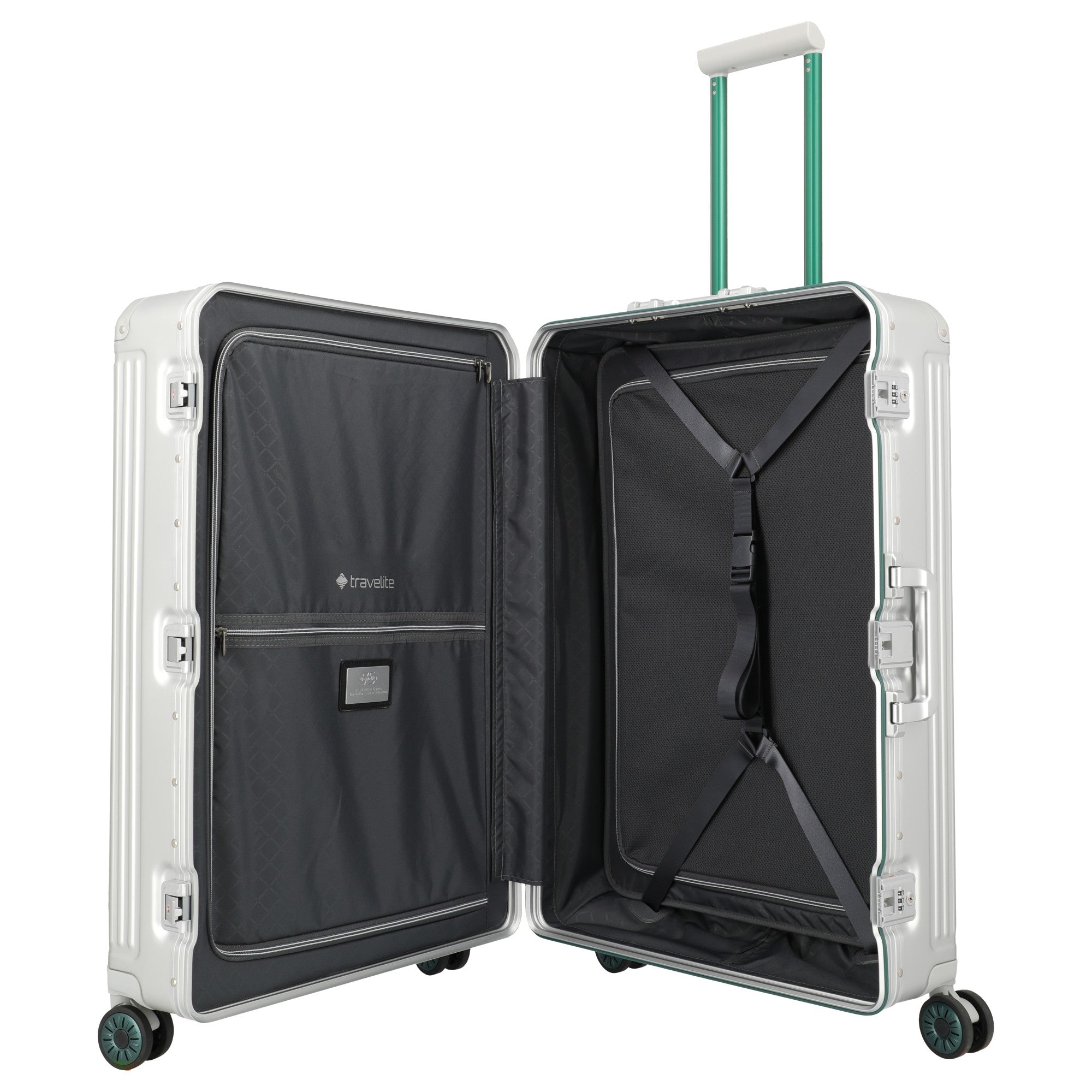 Der Travelite Next Trolley in silber-grün ist nicht nur ein praktischer Begleiter, sondern auch ein stilvolles Accessoire, das auf jeder Reise zum Blickfang wird. Genießen Sie die Vorteile dieser Jubiläums-Edition und reisen Sie mit Stil und Sicherheit!
