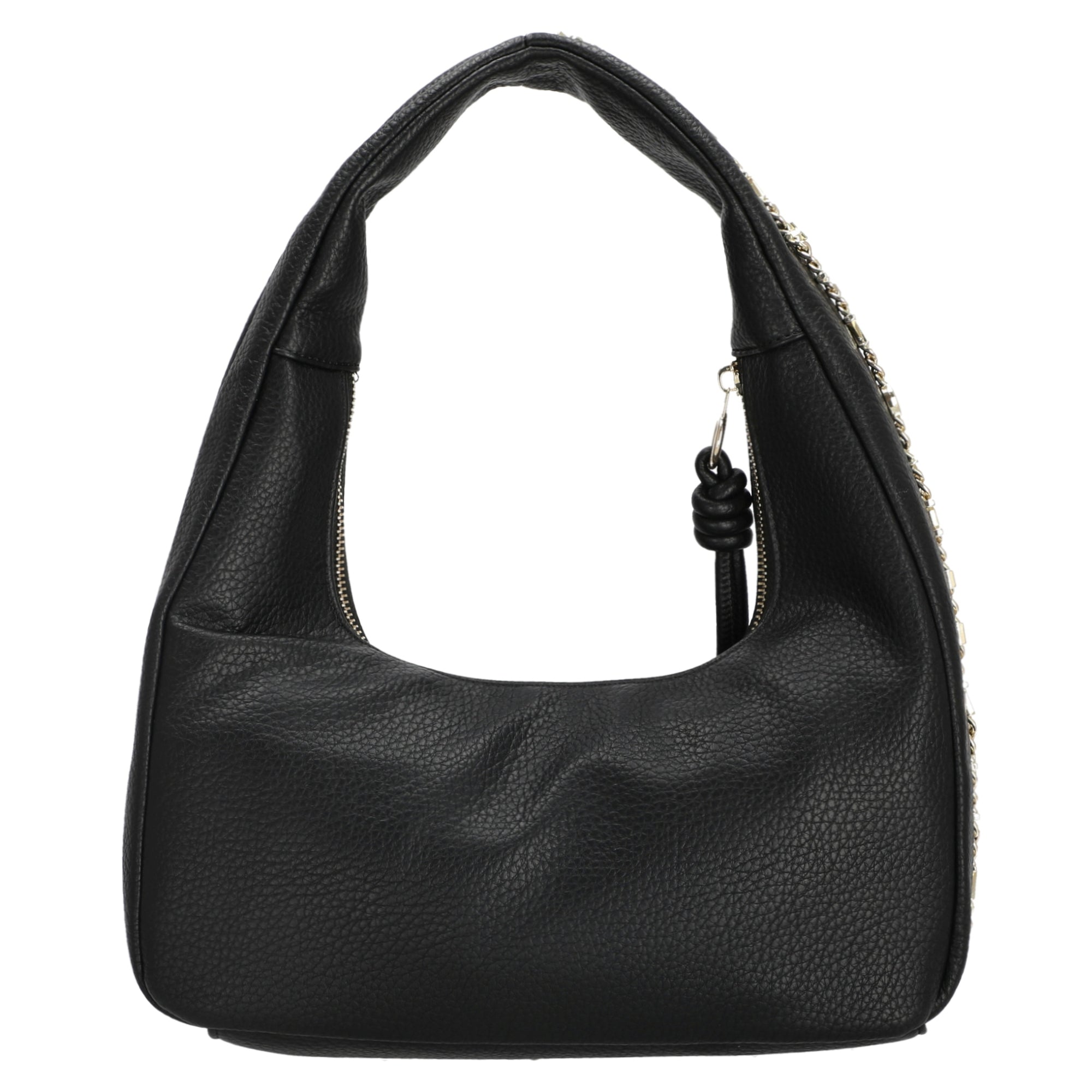 Diese schwarze Henkeltasche ist ein vielseitiger Begleiter, der sich mühelos zu verschiedenen Looks kombinieren lässt – ideal für den Alltag oder besondere Anlässe.